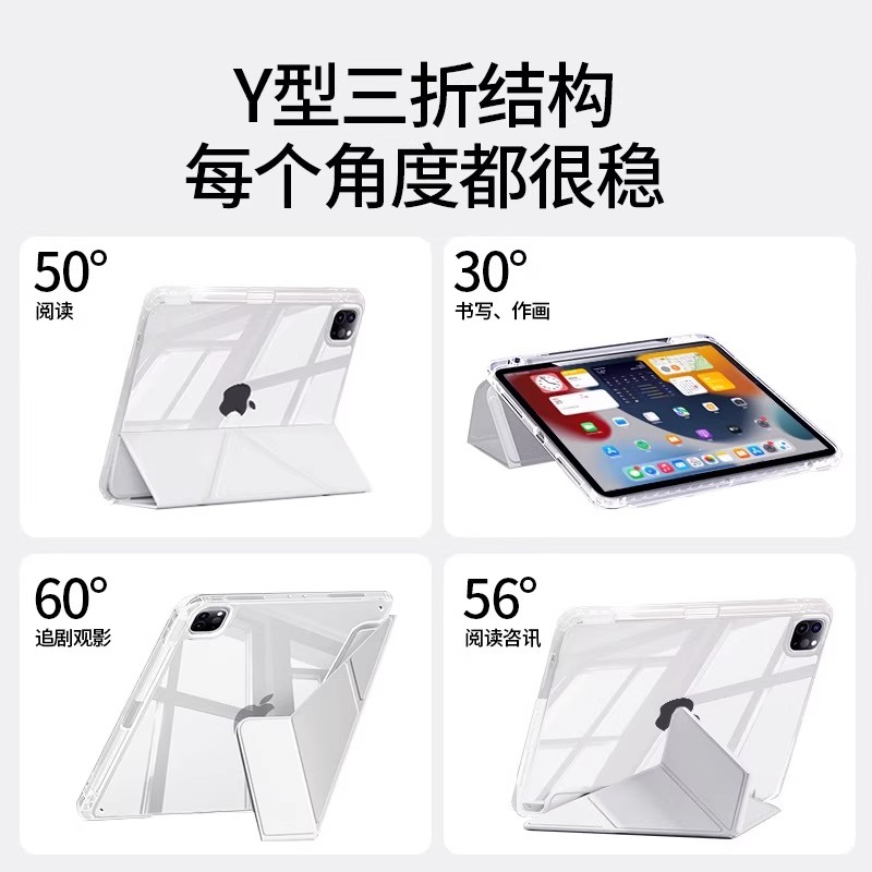 适用于ipadair6保护壳2025ipadpro11寸保护套10适用苹果平板air5带笔槽第9代mini6硬壳4亚克力3 Y折13防弯9.7
