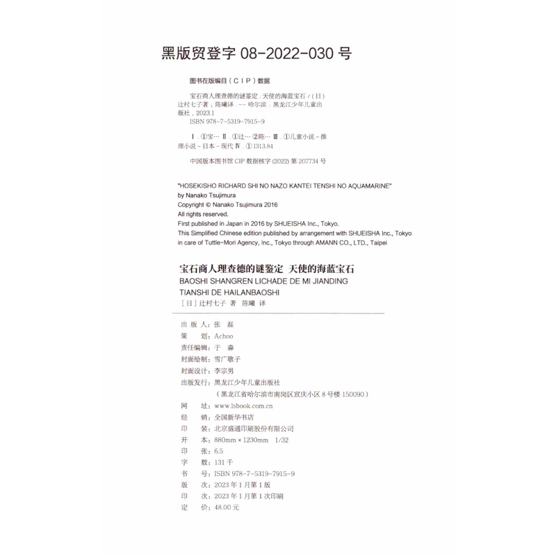 日 海蓝宝石 辻村七子侦探推理 恐怖惊悚小说黑龙江少年儿童出版 宝石商人理查德 社新华书店正版 谜鉴定.天使