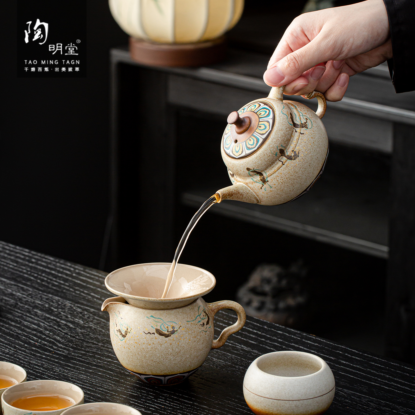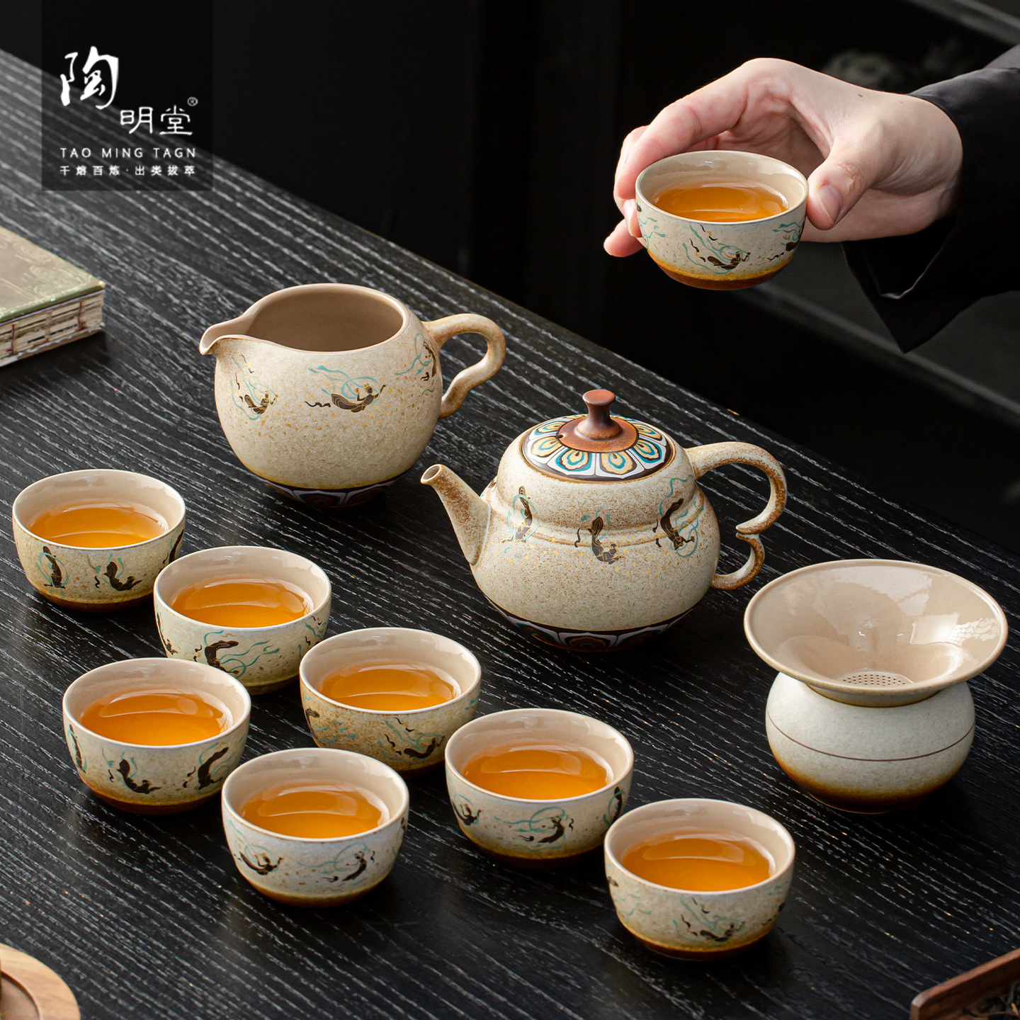 懒人茶具套装 家用喝茶防烫泡茶壶陶瓷功夫茶杯石磨半自动冲茶神器