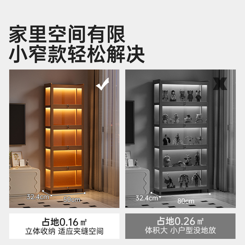 手办展示柜带灯带锁亚克力展示架透明摆件收纳玩具积木痛柜展示盒