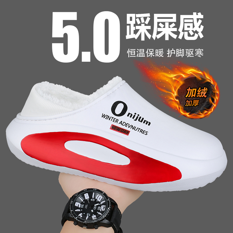 加绒加厚室内居家包跟踩屎感防水防滑保暖棉鞋 冬季 男款 包头棉拖鞋