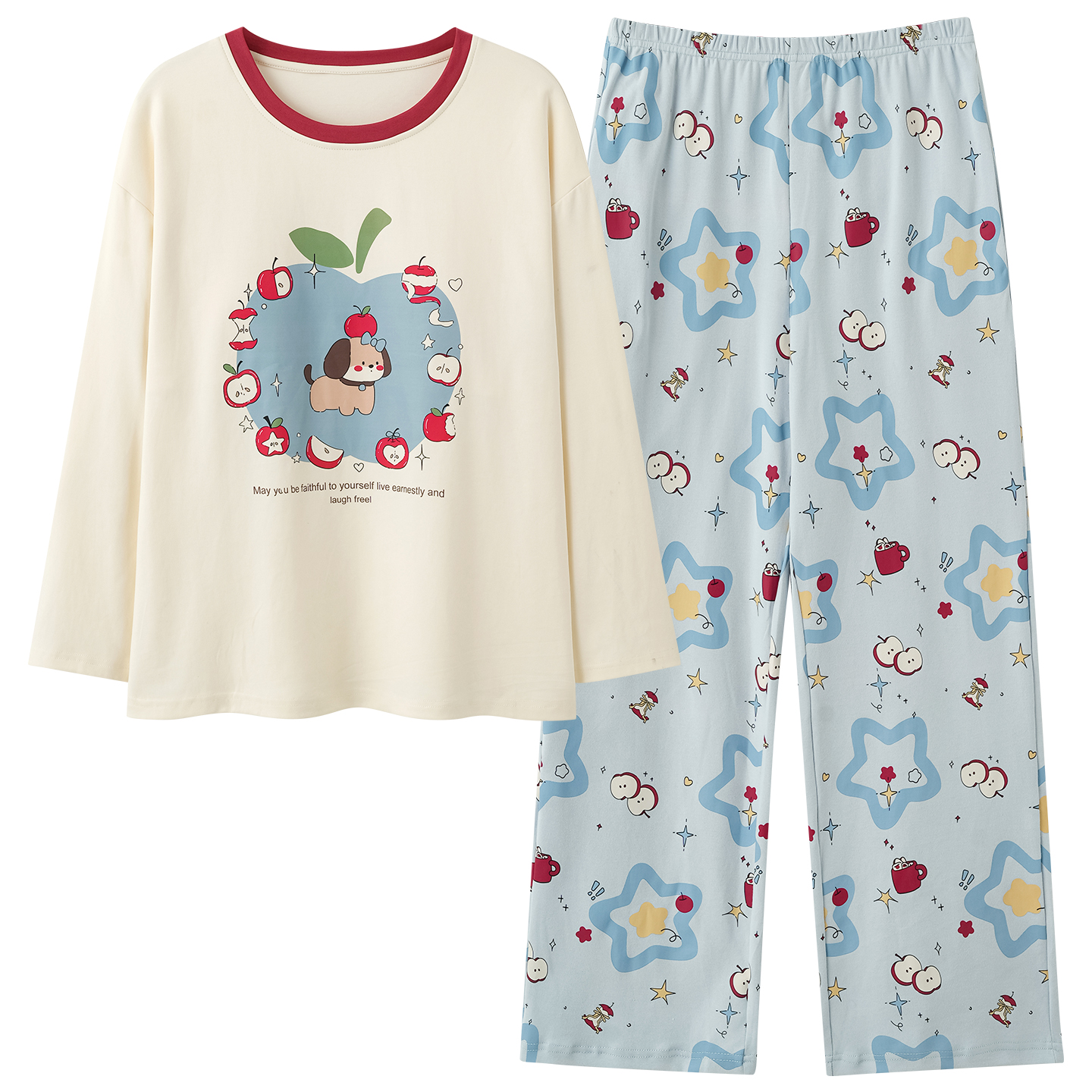 家居服 卡通格子2025年新款 都市丽人睡衣女纯棉春秋带胸垫长袖 长裤