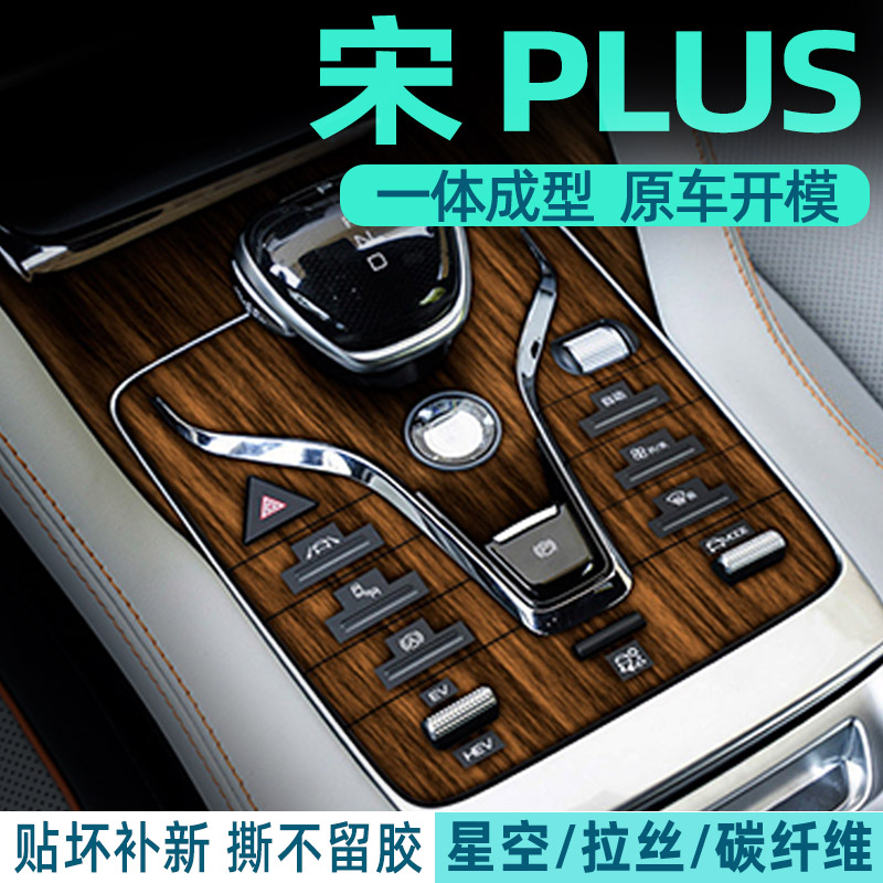 适用于比亚迪宋plus内饰改装 饰EV中控四驱排挡拉丝灰贴膜 DMi装