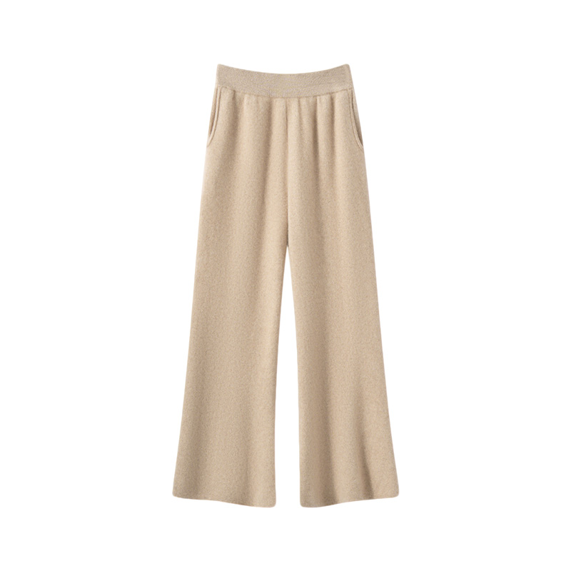 休闲宽松针织羊绒裤 秋冬新款 时尚 女高腰喇叭裤 外穿 加厚100%羊绒裤