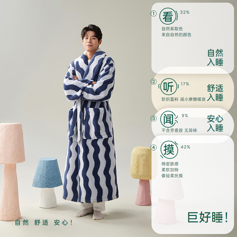 2025新款 安之伴 珊瑚绒睡袍秋冬季 男士 浴袍法兰绒家居服 巨好暖