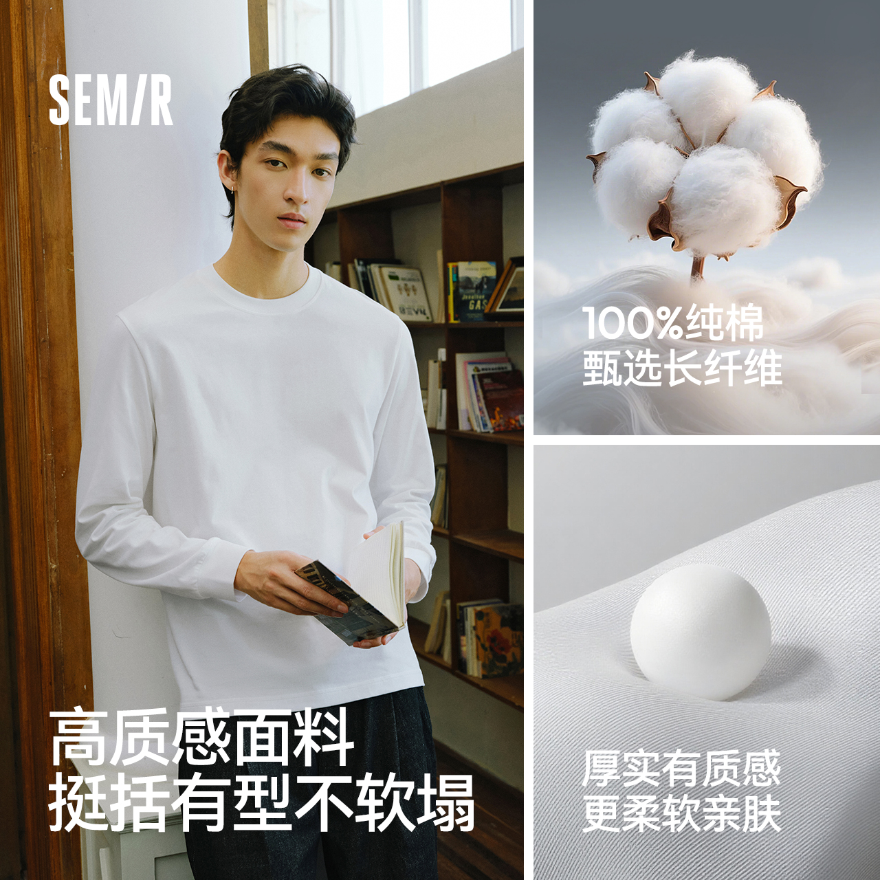 内搭白加厚百搭暖 纯色基础情侣25冬新款 森马长袖 T恤男纯棉打底衫