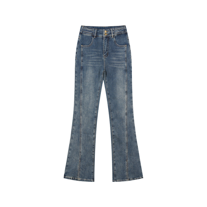 子抓绒2025秋冬新款 Jamor加墨时尚 显瘦开叉裤 微喇牛仔裤 修身