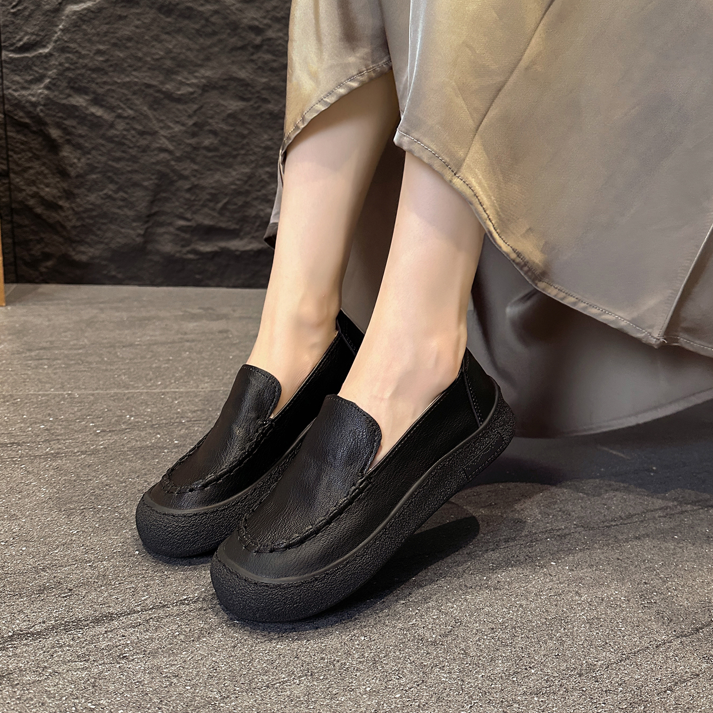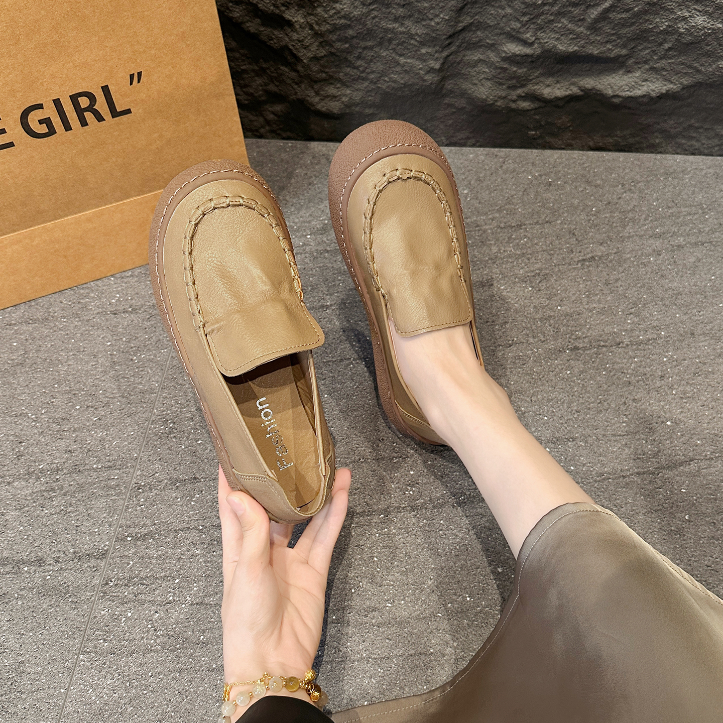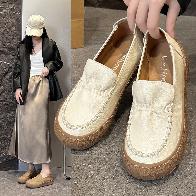 软底单鞋 踩屎感英休闲真皮乐福鞋 平底一脚蹬豆豆鞋 2025新款 女秋季