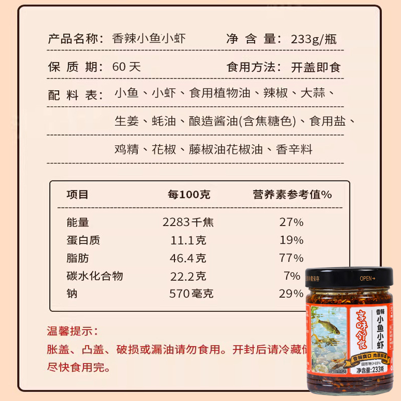 湖南特产小鱼小虾即食香辣农家柴火鱼拌饭酱下饭菜下酒菜瓶装 零食