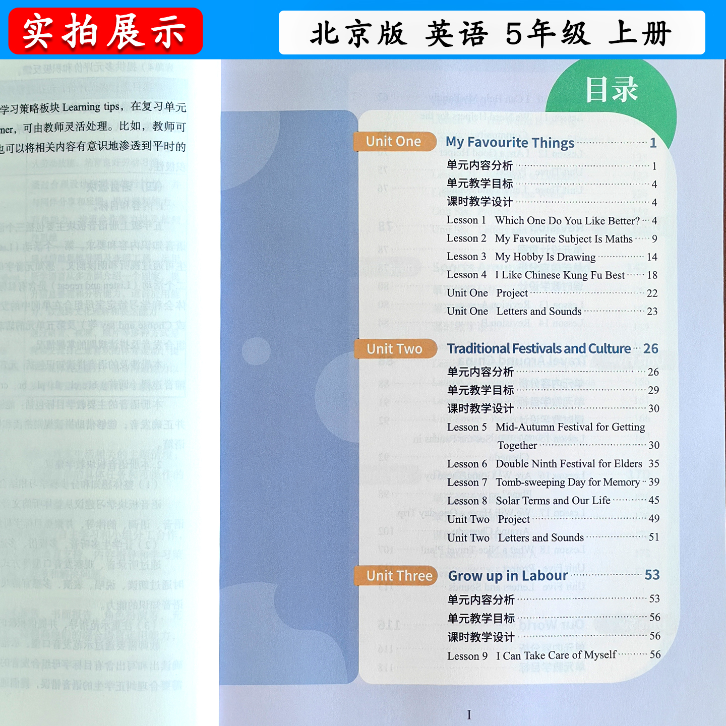 五年级英语上教学指导教参老师教案英语五年级上学期北京出版 小学英语教师用书5年级上册北京课改版 北京版 社教科书 2025秋新版