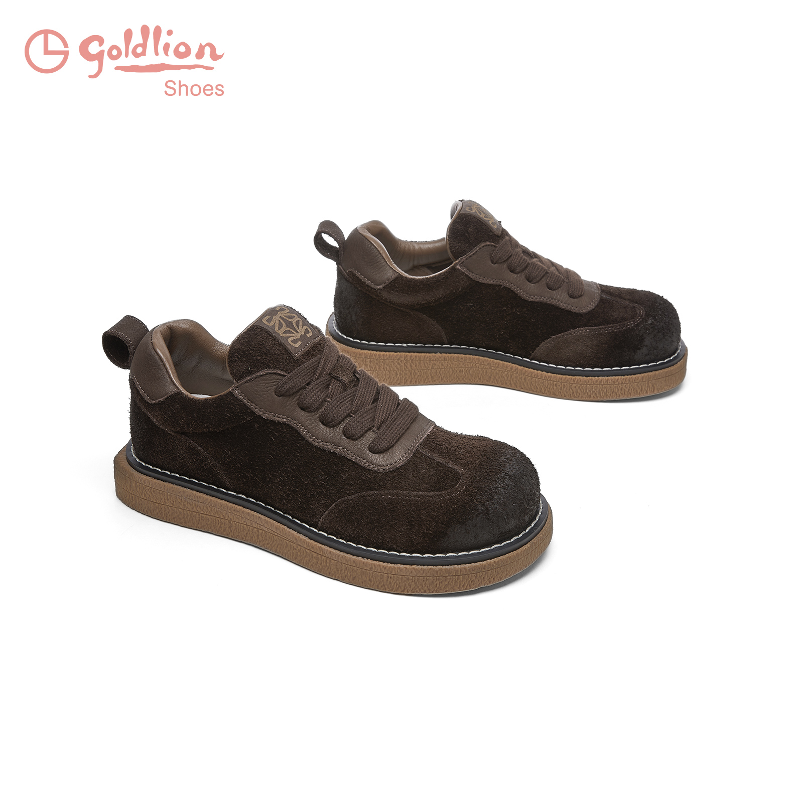 2025秋季 黑色百搭户外运动鞋 新款 系带休闲鞋 复古厚底鞋 金利来女鞋