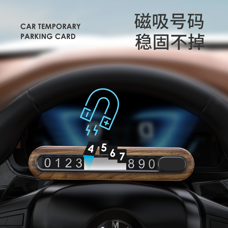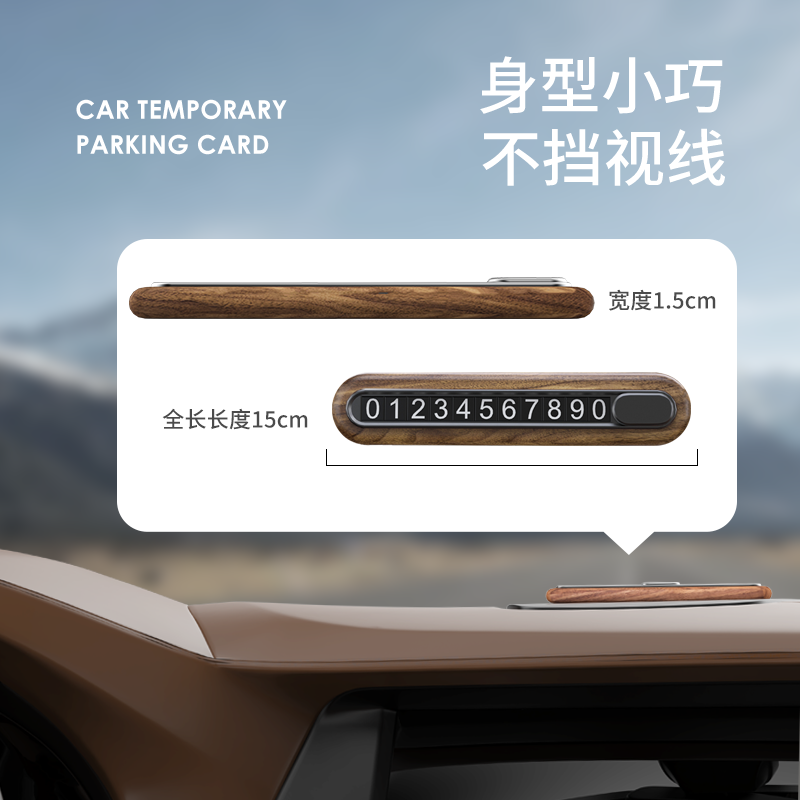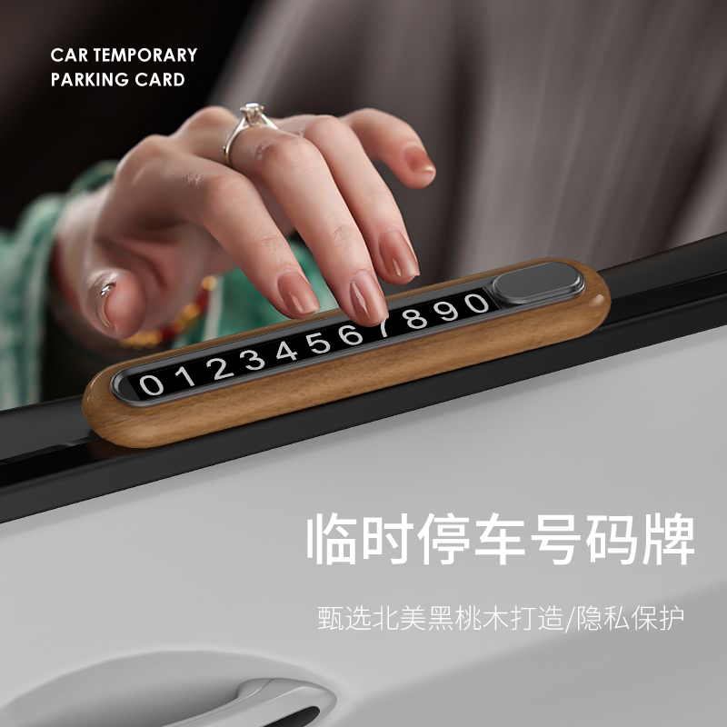 胡桃木挪车电话牌高级感移车牌汽车停车牌男女车载临时停车号码 牌