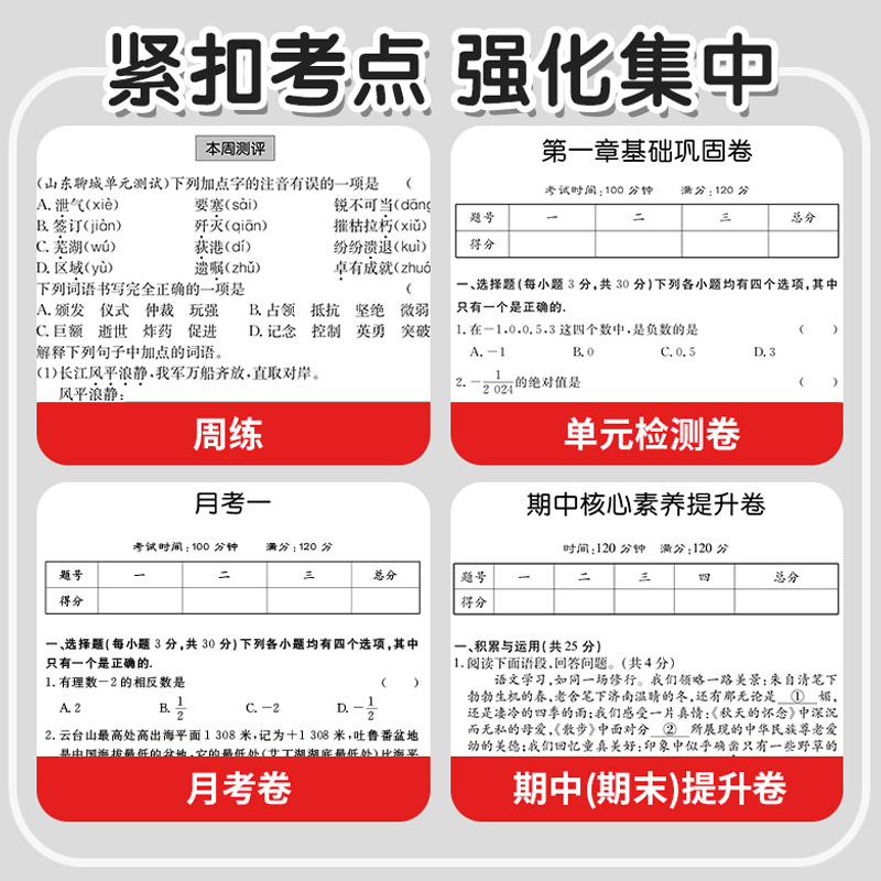 初中七年级八年级上册试卷测试卷全套初一初二上语文数学英语物理政治历史地理生物人教版 小四门同步训练练习册知识点语数英好卷