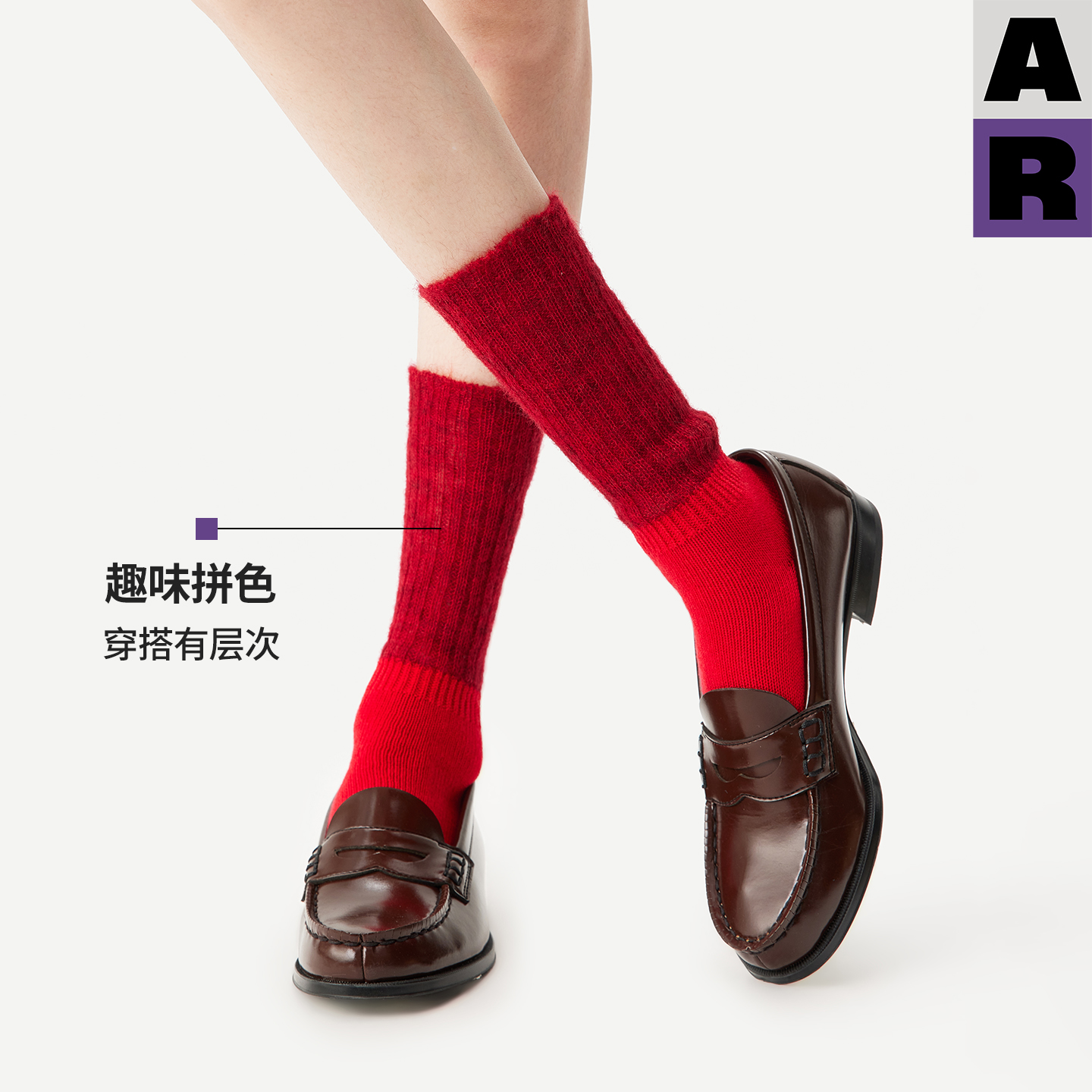 乐福鞋 黑色袜子女中筒纯棉秋冬季 堆堆长袜搭配小皮鞋 爆款 2025新款