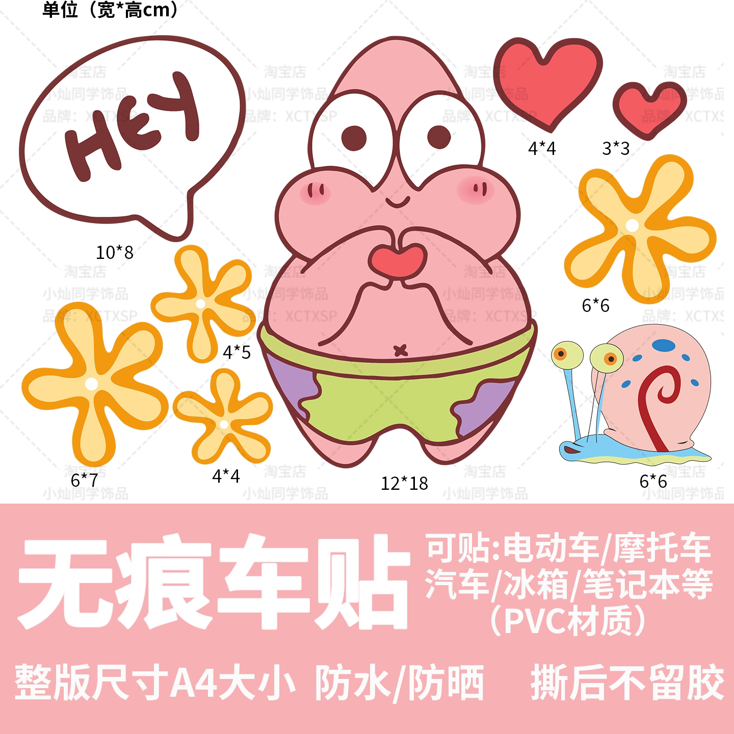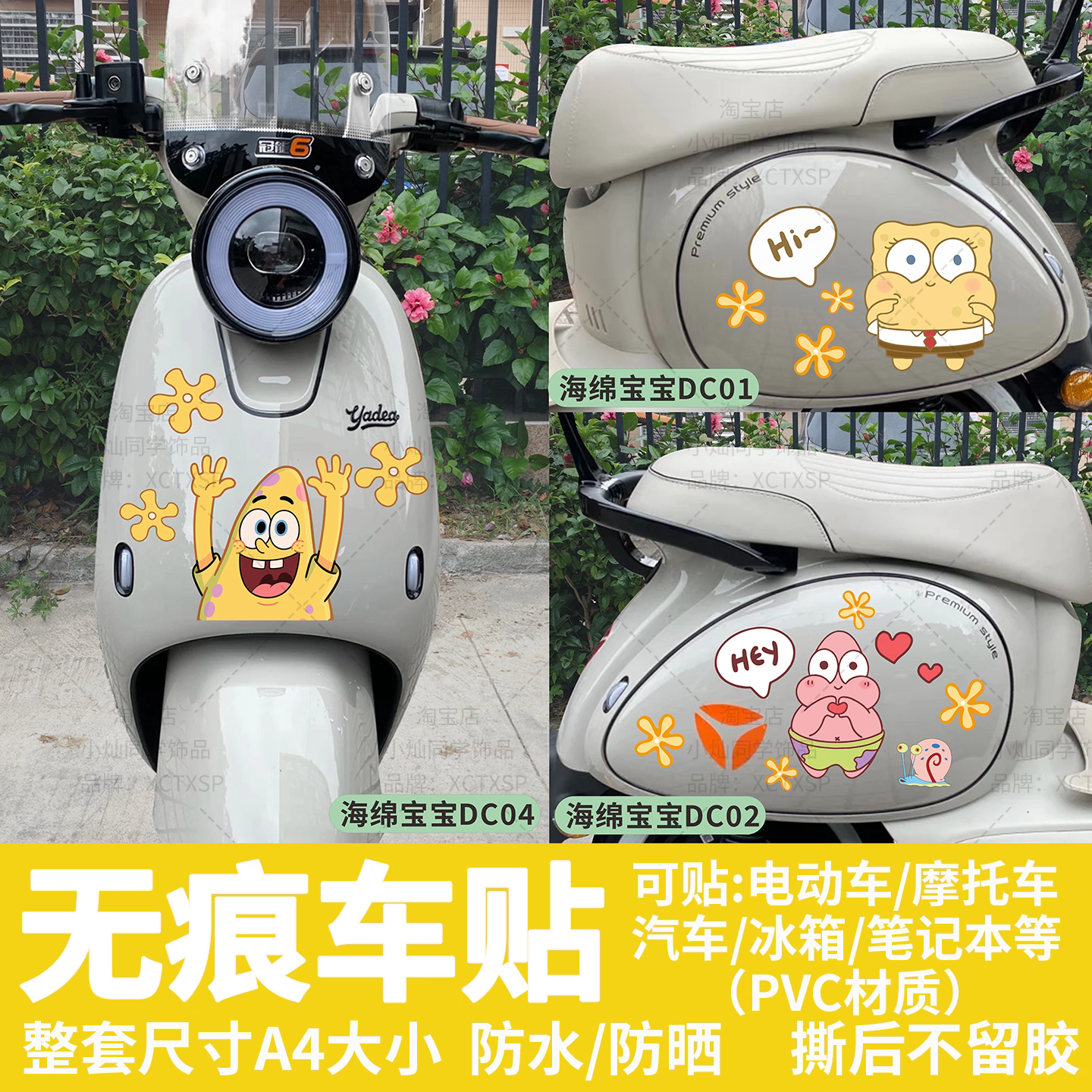 适用雅迪Q50电动车贴纸可爱海绵宝宝贴纸尾箱划痕遮挡装 饰贴纸