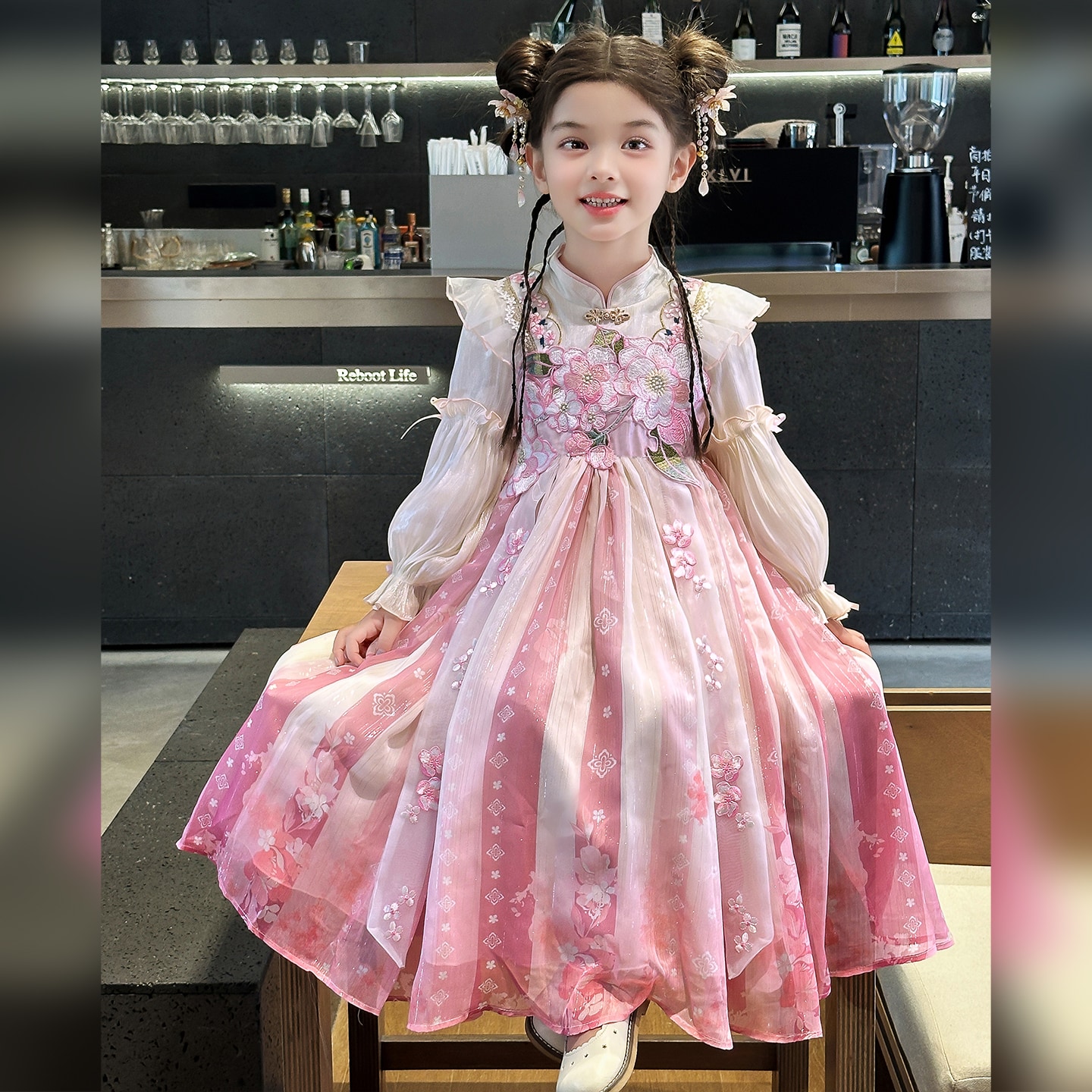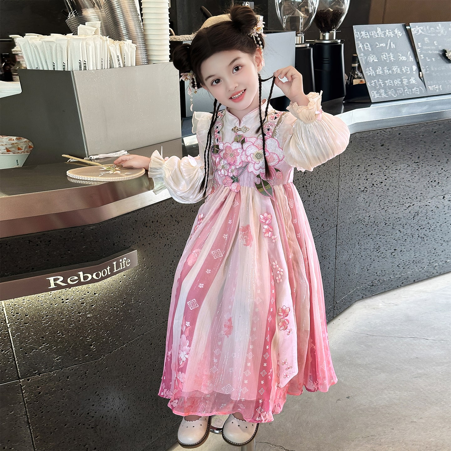 裙子秋季 女童汉服秋装 儿童古风超仙唐装 古装 连衣裙中国风2025新款