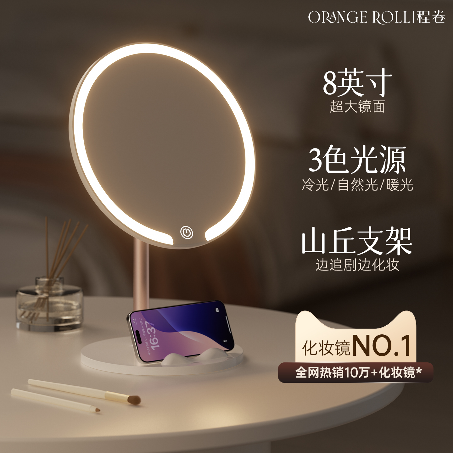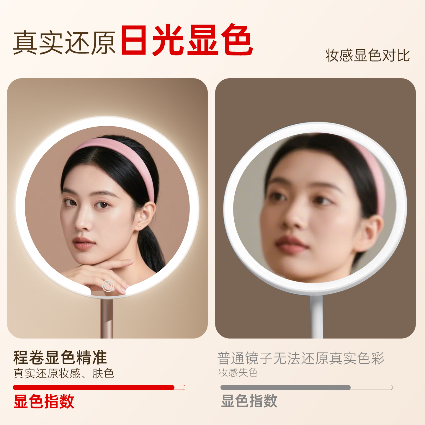 2025新款 家用补光梳妆镜子学生宿舍办公室 led化妆镜带灯桌面台式