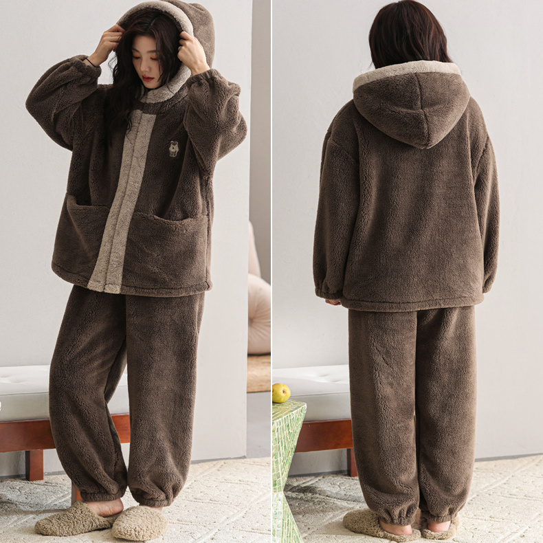 加绒保暖套装 睡衣女秋冬款 冬天大码 珊瑚绒家居服法兰绒加厚款 冬季