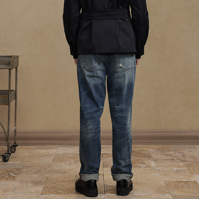 13415153 纯棉拼接中腰复古直筒牛仔裤 佐丹奴猫须牛仔裤 女秋冬新款