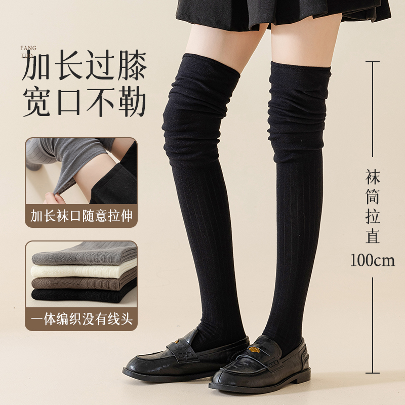 过膝袜子女堆堆春秋款 不勒脚长筒袜 配长靴子高筒过膝盖大腿秋冬季