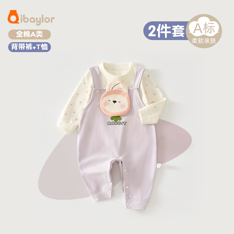 套装 婴儿秋季 上衣背带裤 卡通外出服新生儿纯棉长袖 超萌连体衣 新款