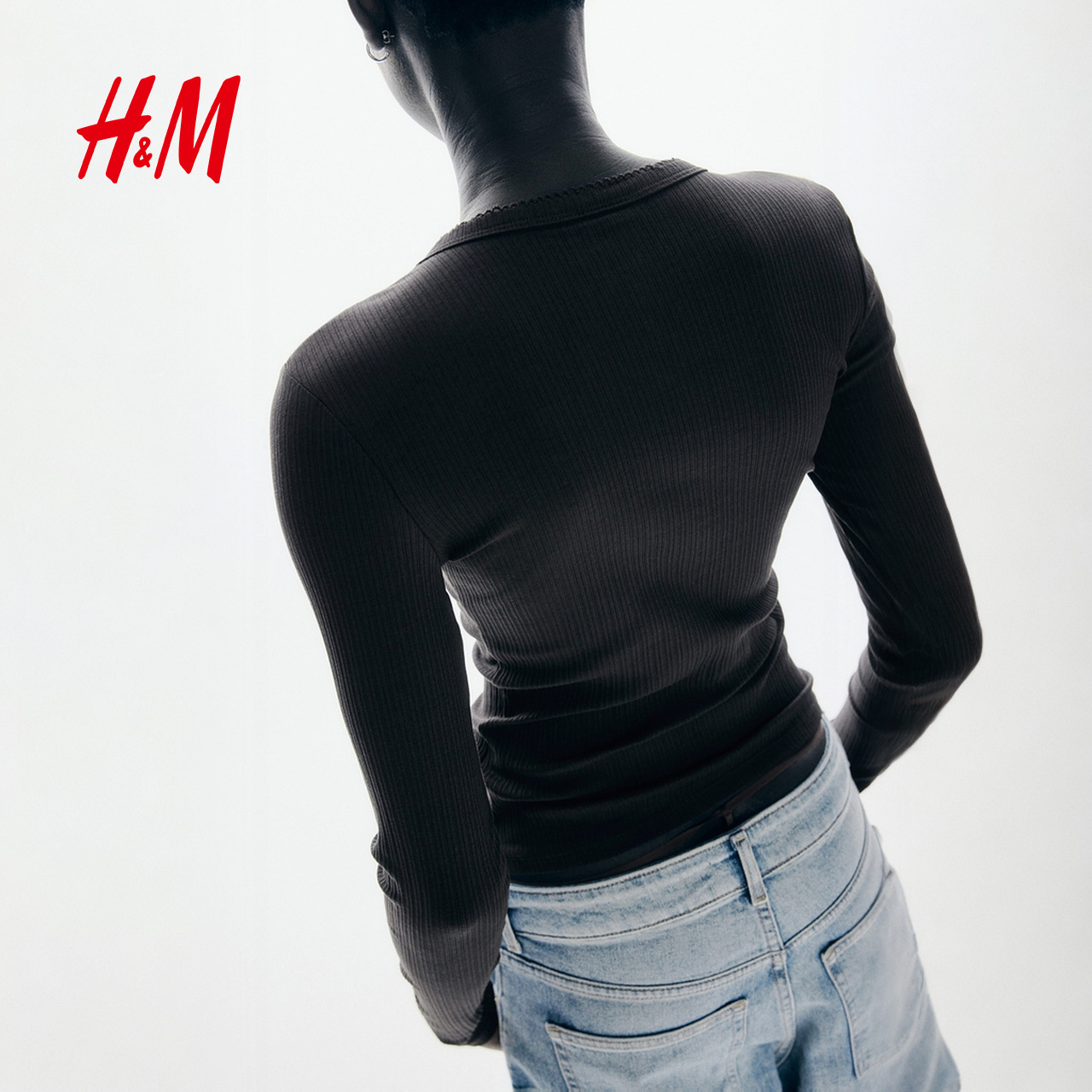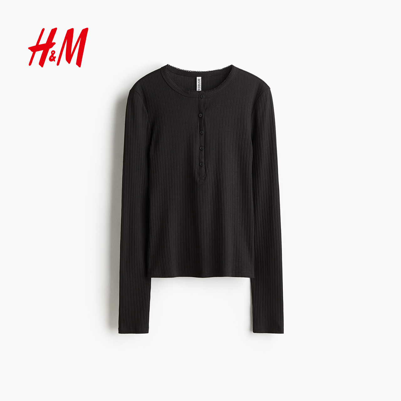 T恤2025秋季 内搭长袖 新款 修身 1297136 亨利领圆领罗纹亨利衫 HM女装
