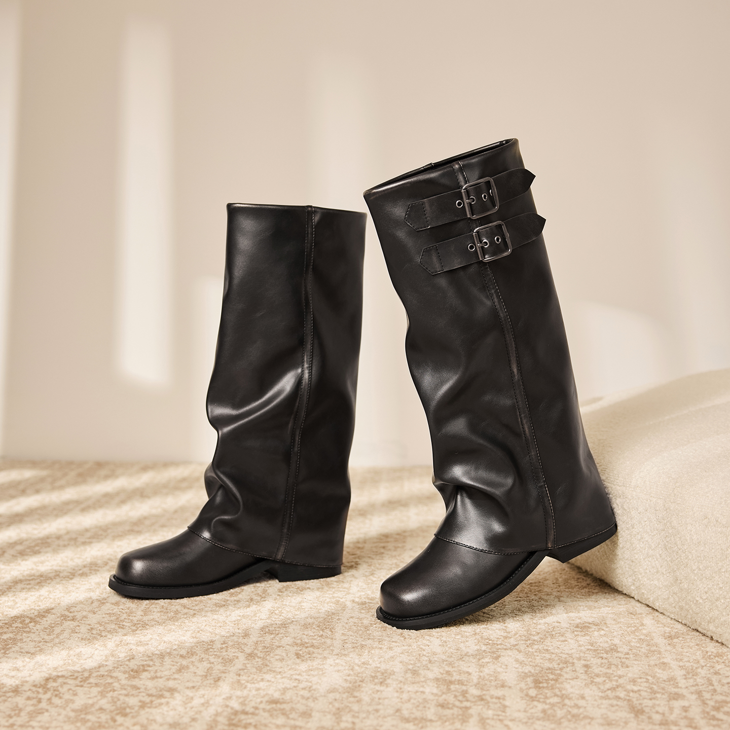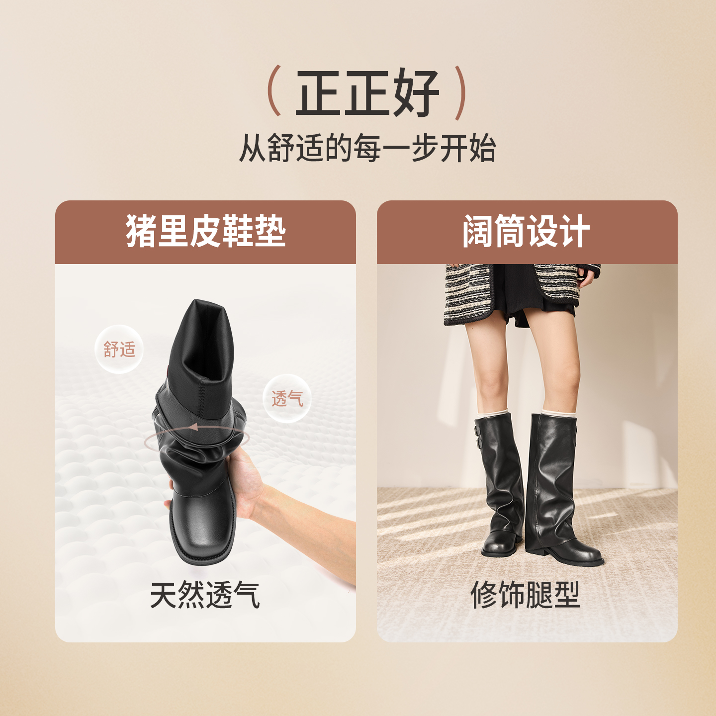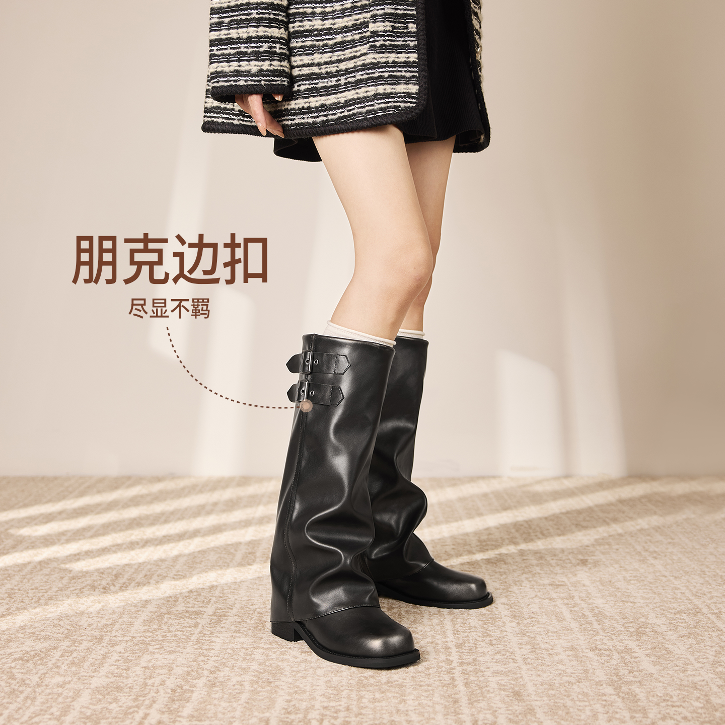 管靴潮流双皮扣甜酷时装 奥康 裤 2025冬季 靴朋克风显瘦长靴 女鞋