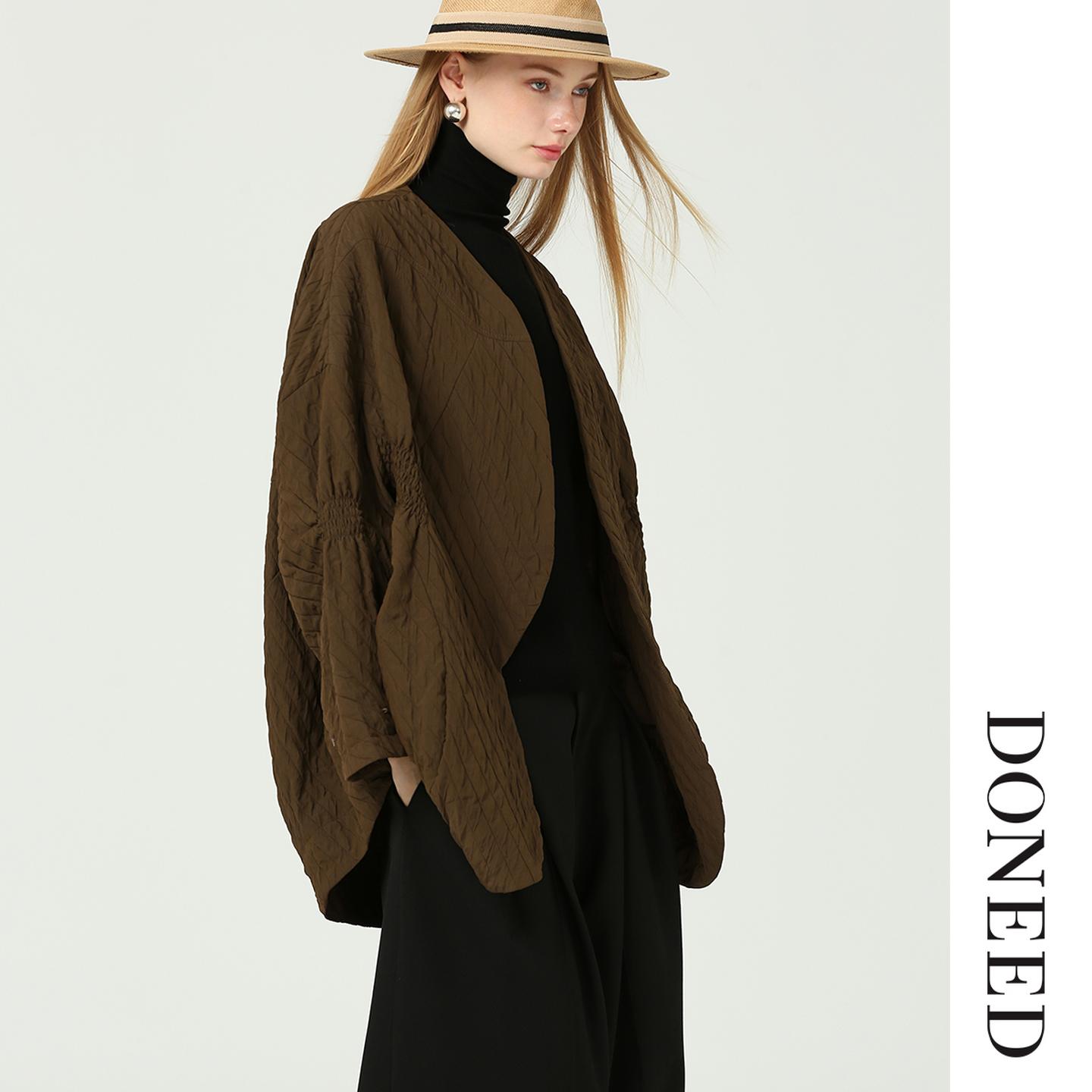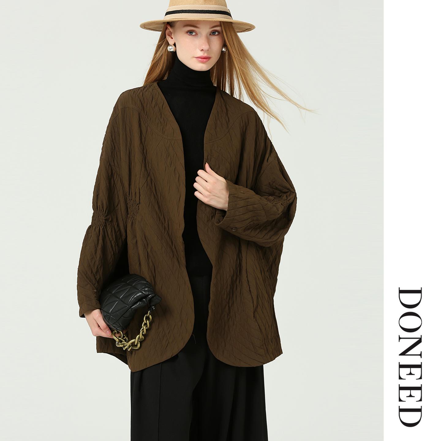 DONEED2025秋款 休闲V领设计感门襟斜纹褶皱肌理感提花外套女 时尚