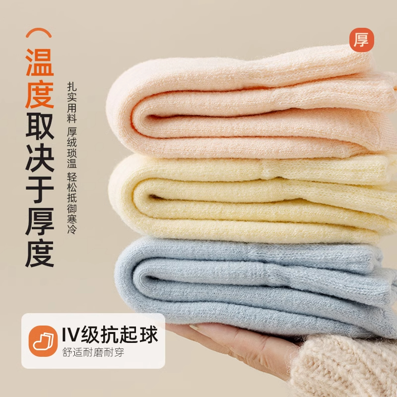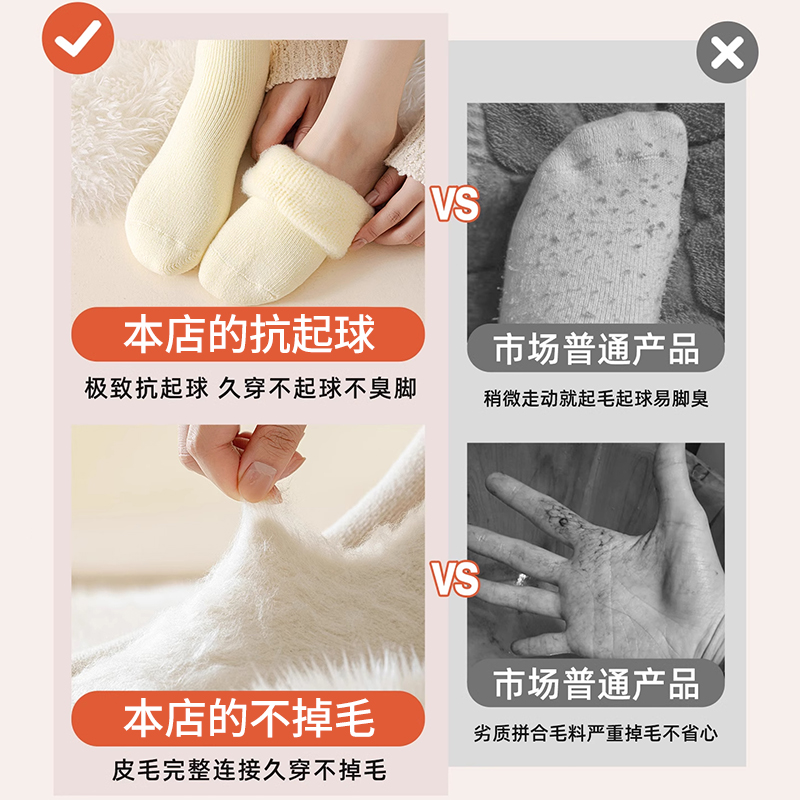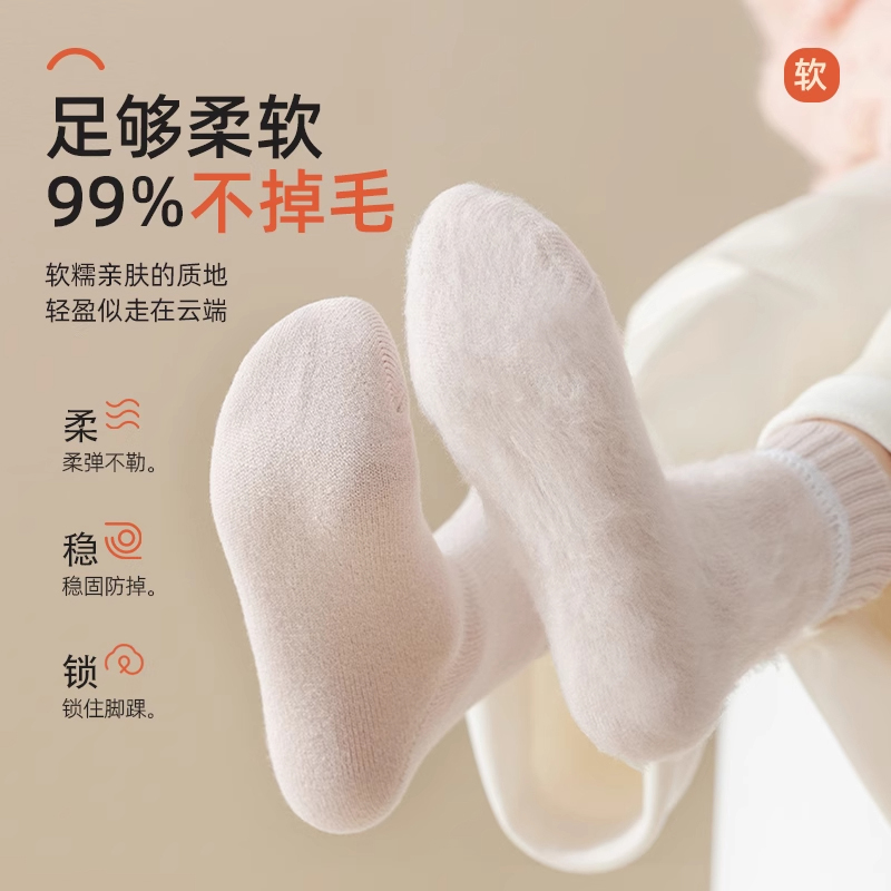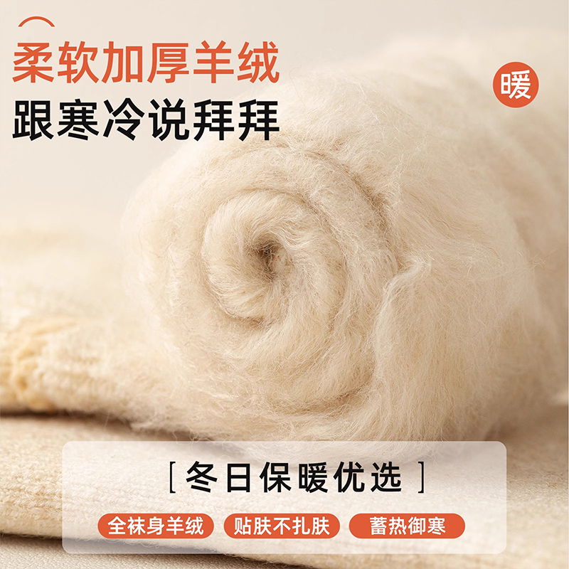羊绒袜子女秋冬季 中筒袜加绒加厚羊毛月子袜东北防寒睡眠保暖长袜