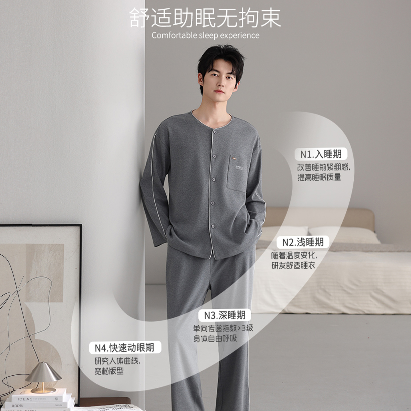 可外穿大码 南极人纯棉睡衣男款 简约全棉家居服套装 新款 男 春秋冬季