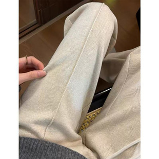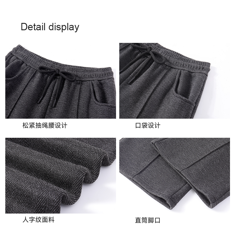 宽松慵懒阔腿裤 KHV真维斯灰色人字纹加绒毛呢直筒裤 女冬2025新款