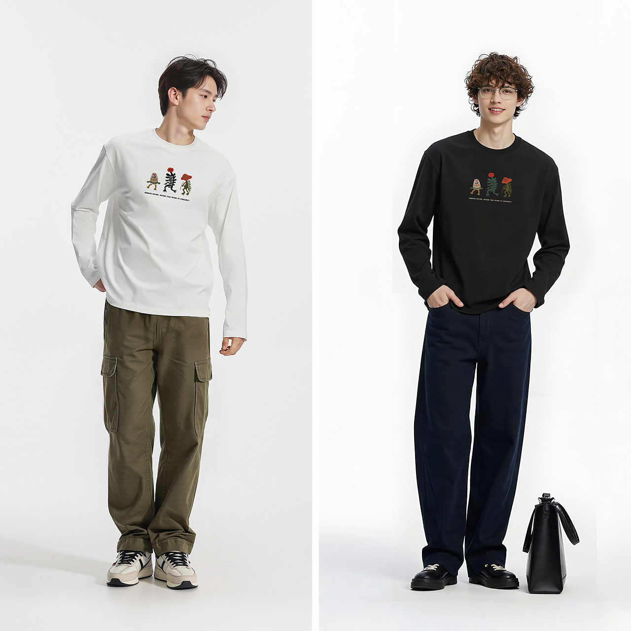 2025新款 搞怪图案印花情侣装 休闲圆领内搭上衣 T恤男冬季 森马长袖