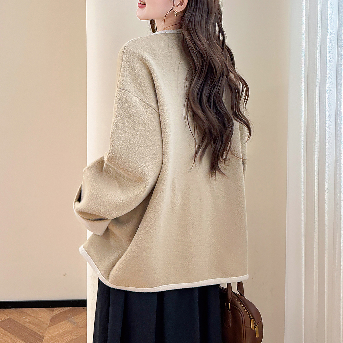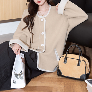 摇粒绒外套小香风上衣千金风气质开衫 女士短款 新款 雪中飞2025秋季