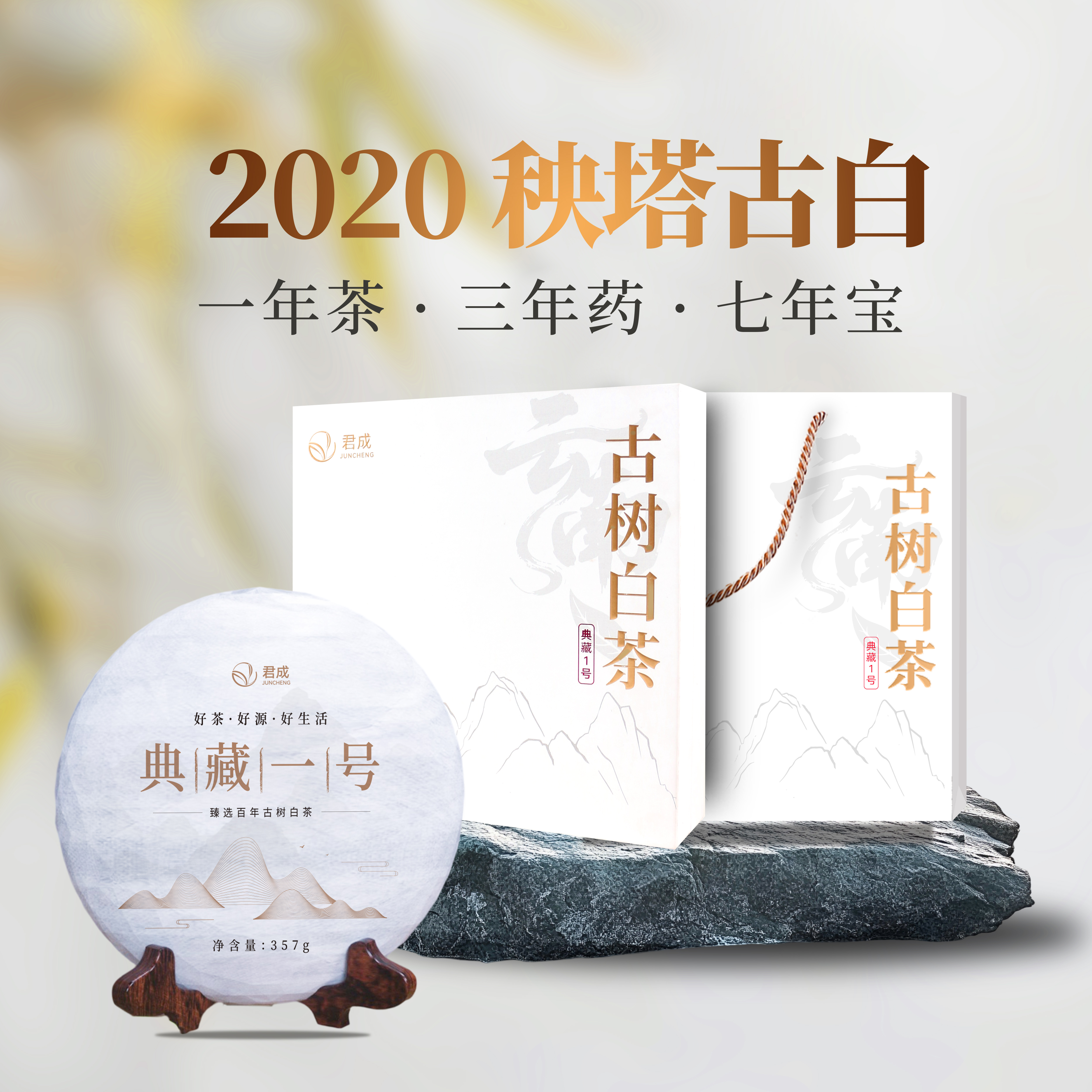 君点茶叶云南白茶景谷大树月光白白茶紧压茶手撕饼特色产区老白茶
