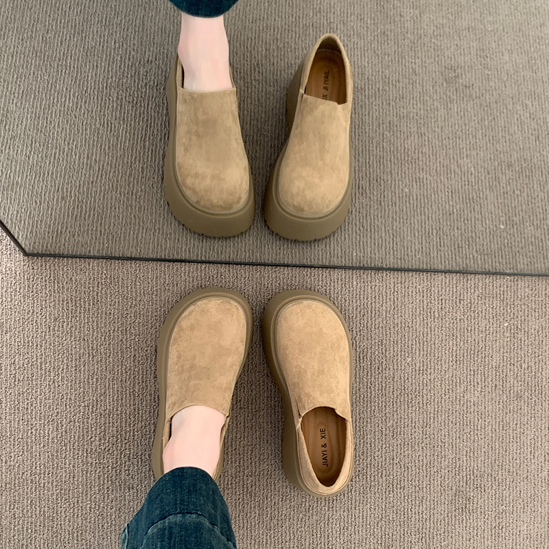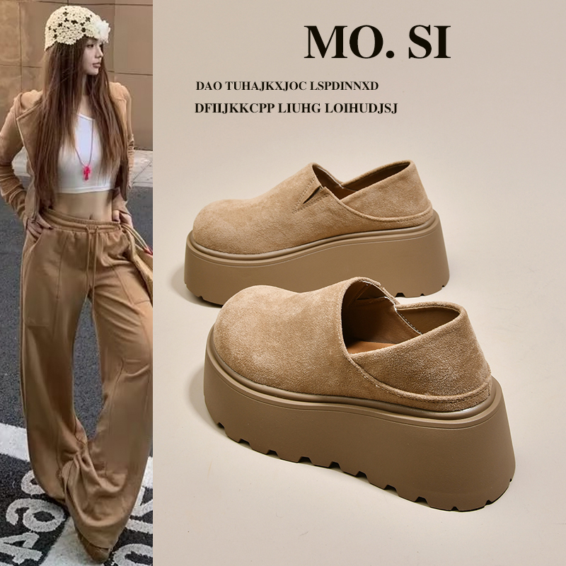 一脚蹬单鞋 乐福鞋 女2025新款 博肯鞋 春夏小个子女鞋 厚底增高勃肯鞋