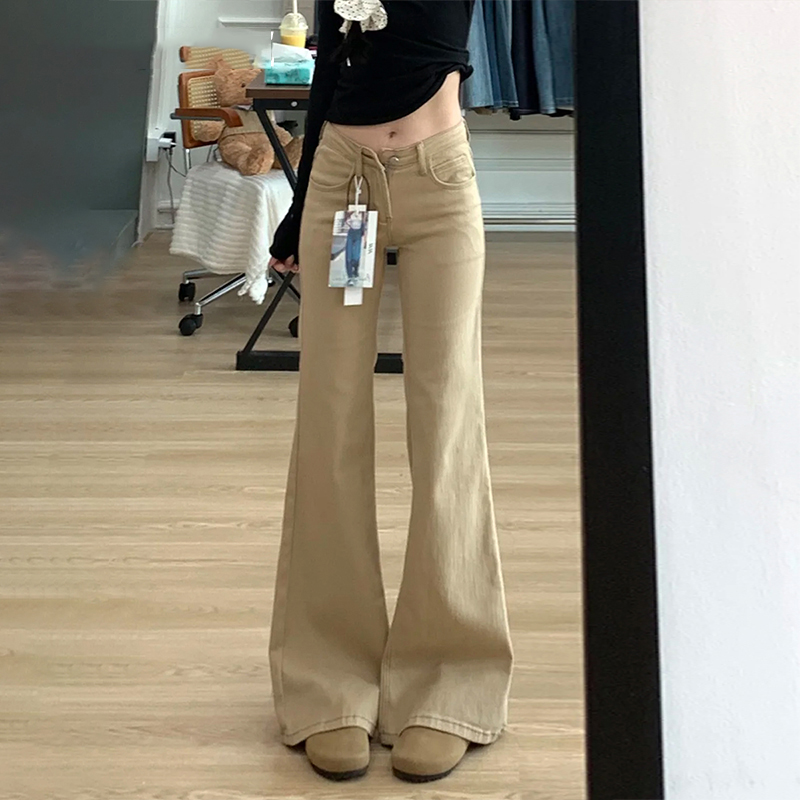 辣妹女长裤 2025新款 中高腰牛仔裤 王家有鱼早秋复古蓝不贴腿微喇裤