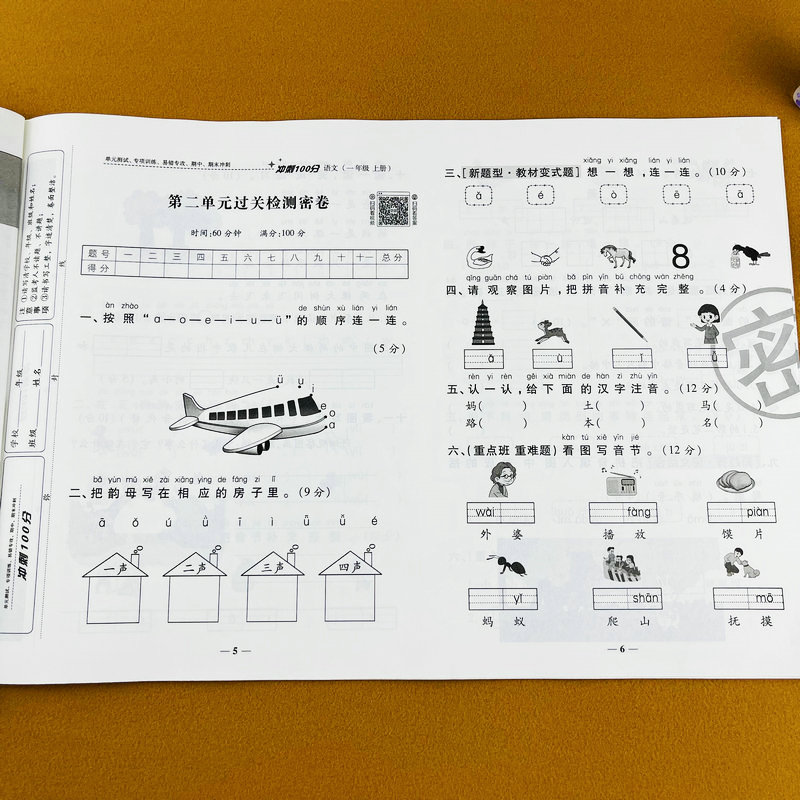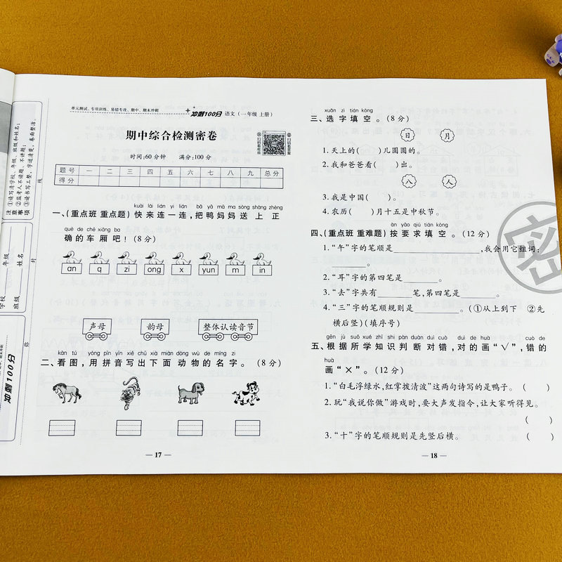 期中期末专项模拟考试卷子冲刺100分试卷期中期末检测单元 教材同步练习册单元 月考卷 小学一年级上册语文测试卷部编人教版 2025新版
