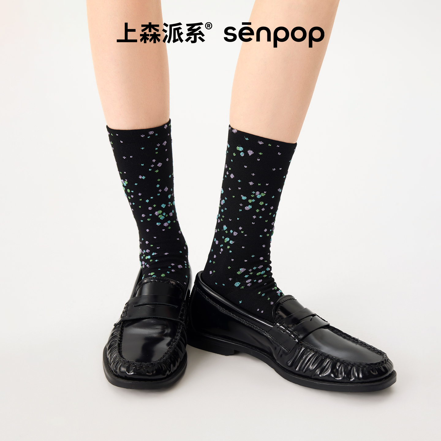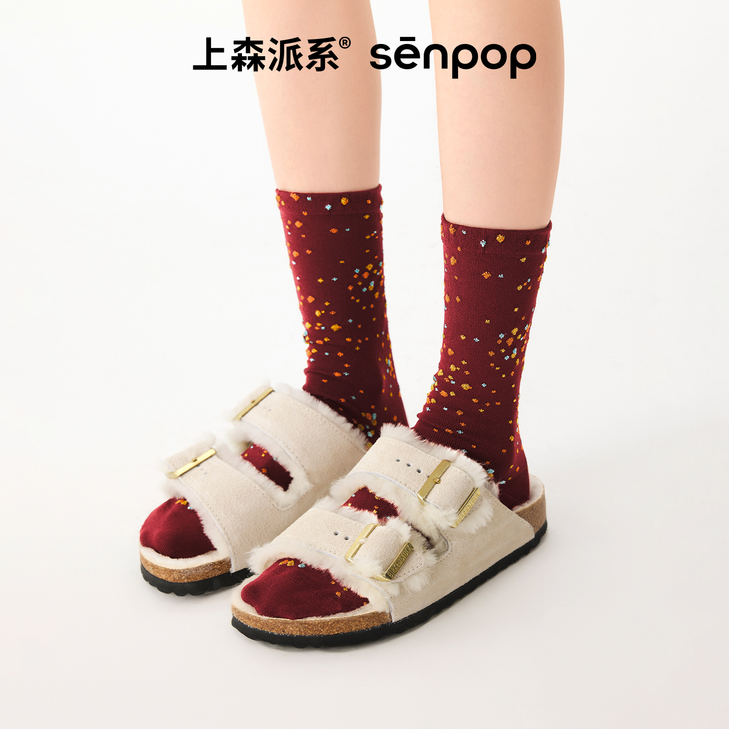 上森亮丝彩点中筒袜女秋冬款 厚袜子 堆堆袜百搭小腿袜长袜2025新款