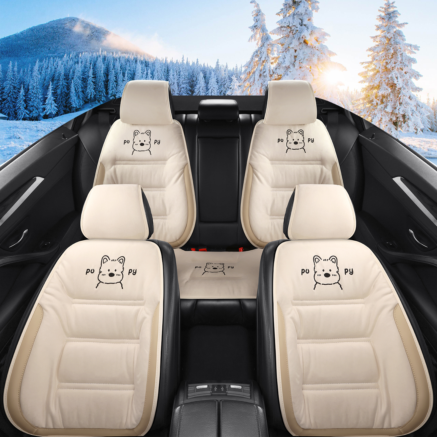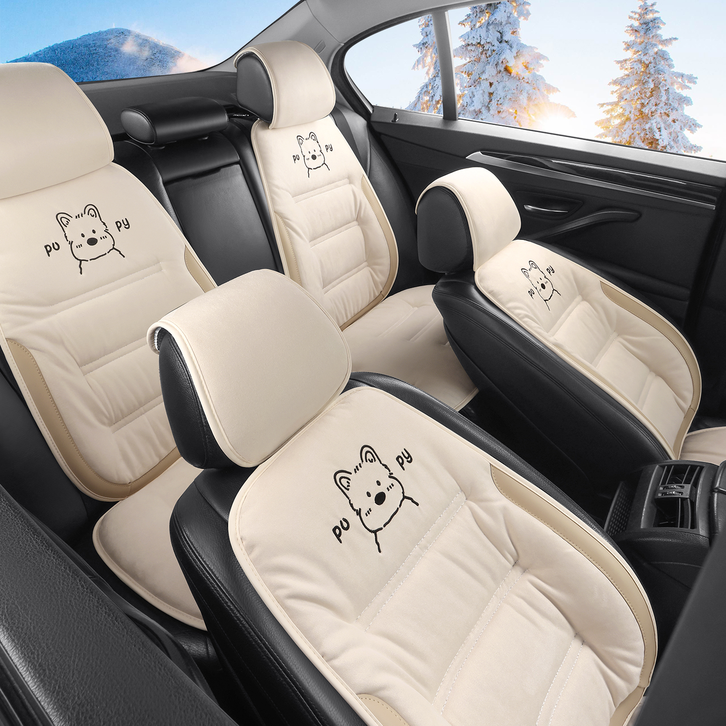 卡通可爱冬季 通用毛绒车内座椅套 羽绒汽车坐垫保暖加厚座椅垫四季