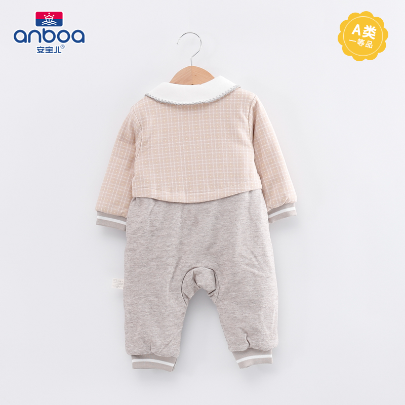 安宝儿婴儿连体衣秋冬衣服新生儿男女宝宝夹棉保暖哈衣厚款 爬服装