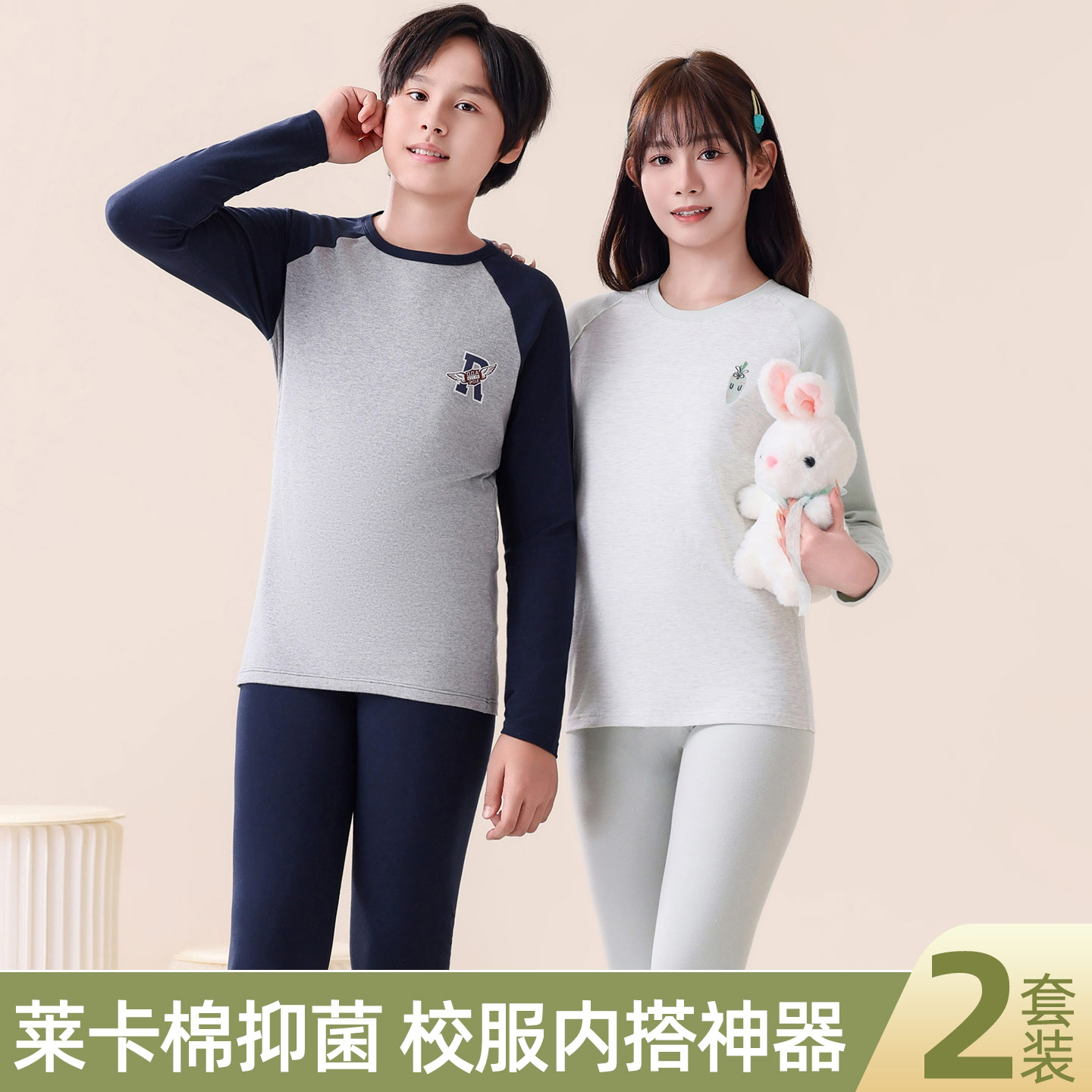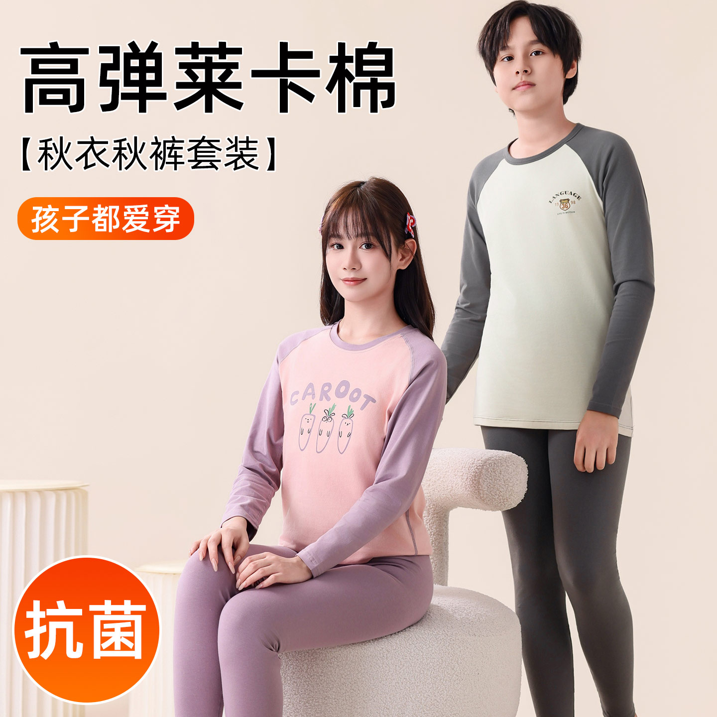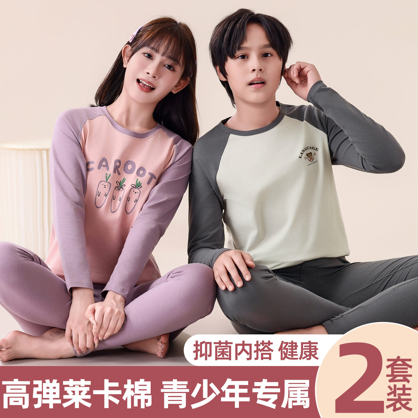 初中高中学生男女中大童棉毛衫 青少年秋衣秋裤 纯棉保暖内衣套装