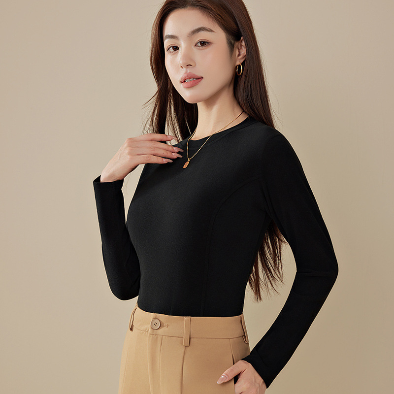 修身 圆领内搭长袖 显瘦纯色保暖上衣 2025新款 浪莎打底衣女士秋冬款