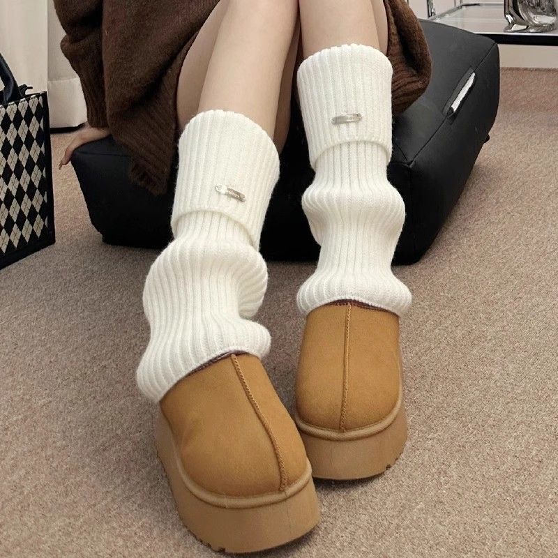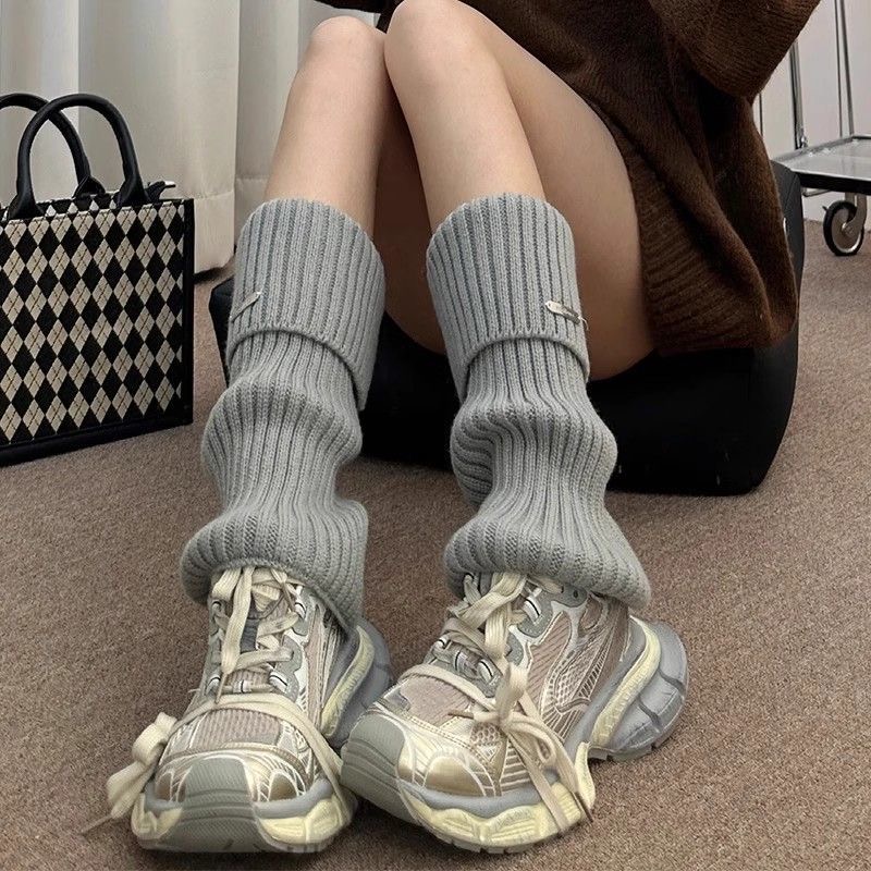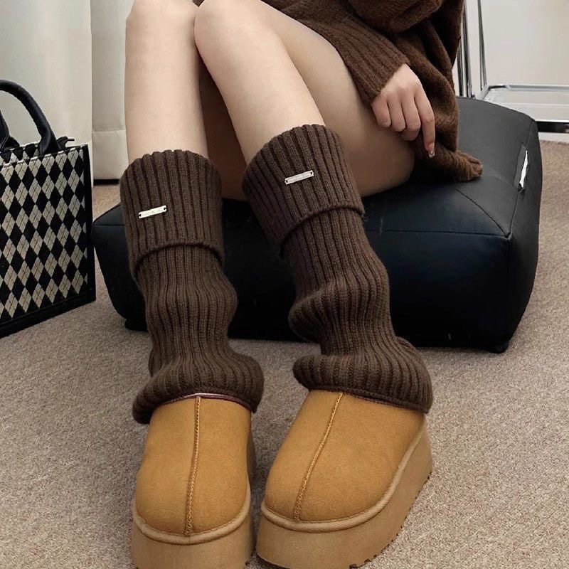 秋冬y2k金属日系辣妹显瘦小腿少女针织百搭堆堆袜棕色保暖长筒袜