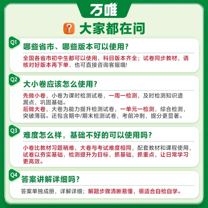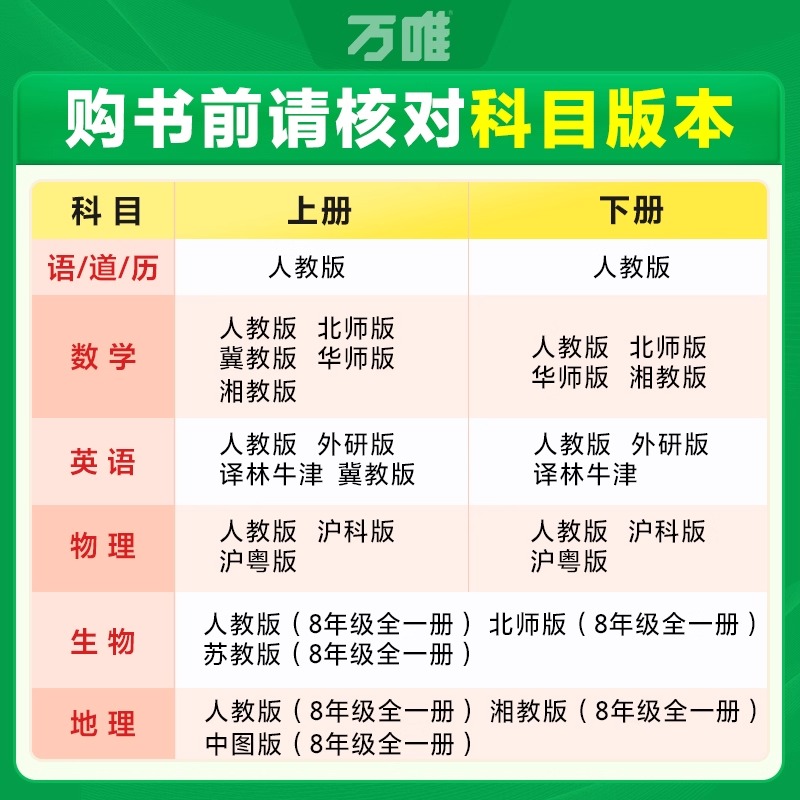 万唯八年级上册大小卷中考数学语文英语物理历史政治生物地理人教版 测试卷全套练习册初中八上初二冲刺模拟万维2025旗舰店 北师单元
