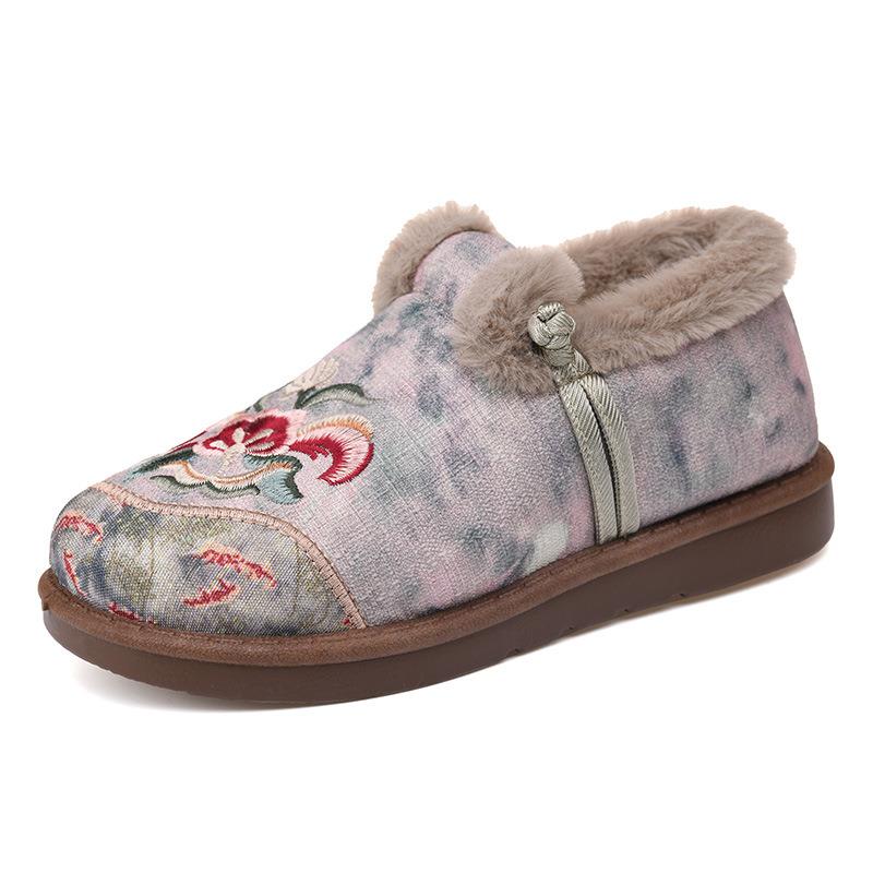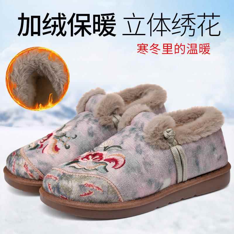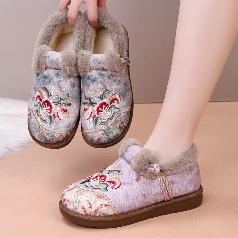 民族风一脚蹬厚底绣花鞋 女加绒加厚保暖妈妈鞋 老北京棉鞋 2025冬季