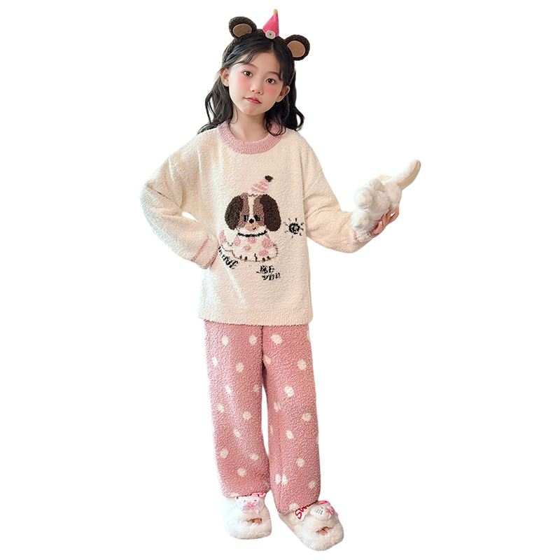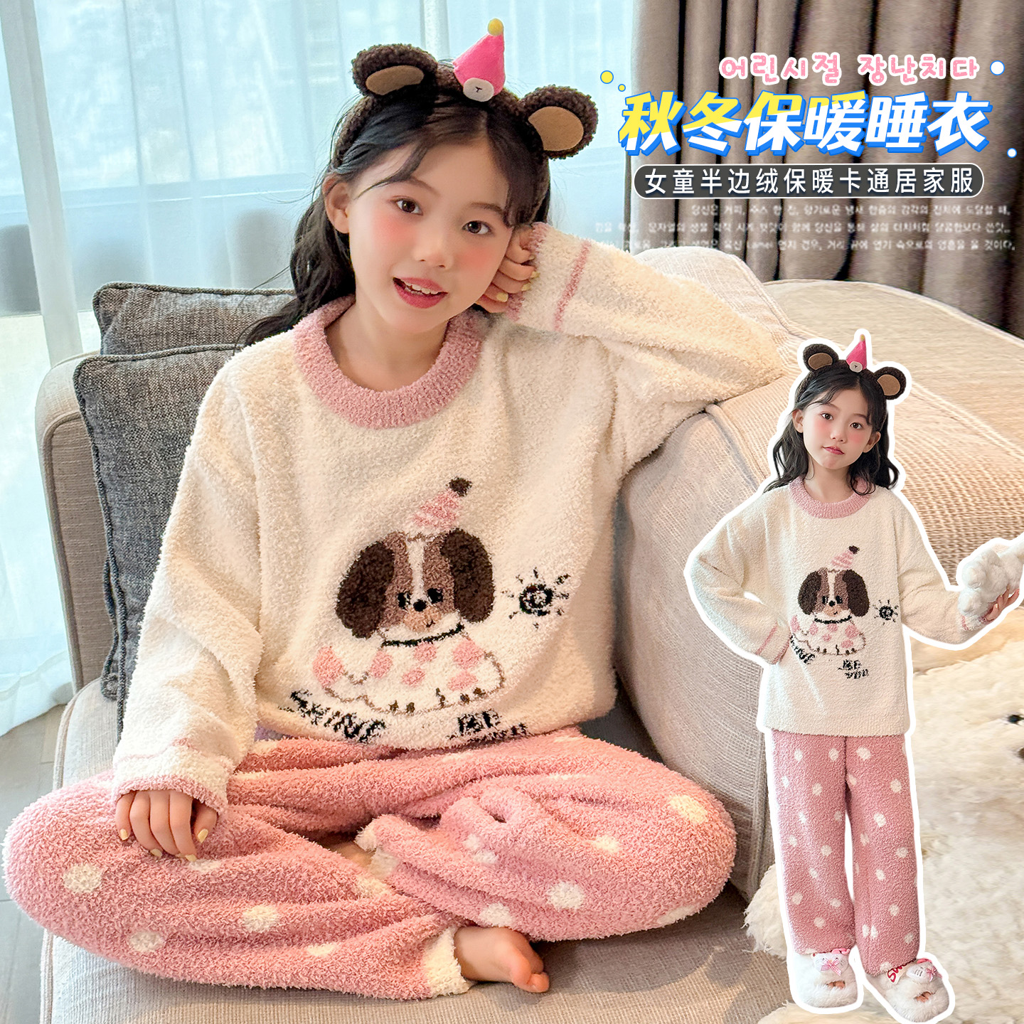 女童睡衣2025新款 秋冬洋气中大童加厚卡通半边绒家居服睡衣套装