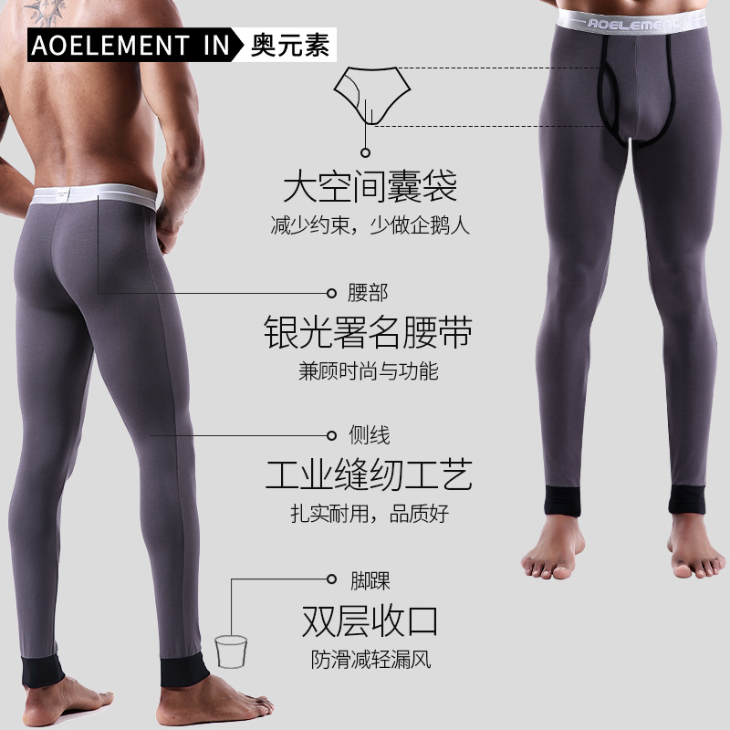 莫代尔秋裤 单件薄款 修身 舒适打底青年保暖裤 奥元 打底裤 素秋冬男士