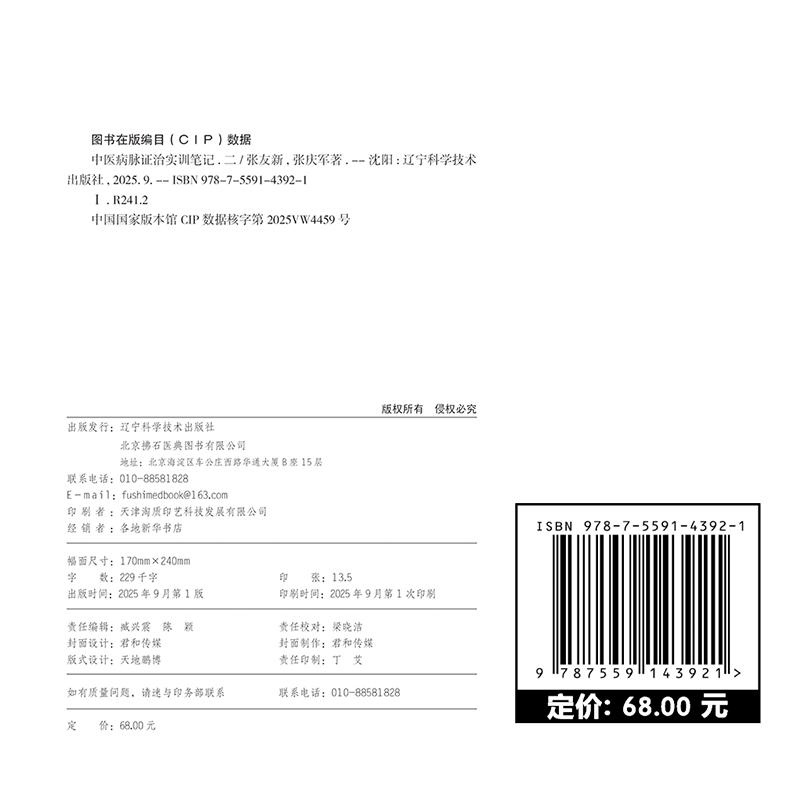 二 社 张友新 辽宁科学技术出版 9787559143921 张庆军 中医病脉证治实训笔记