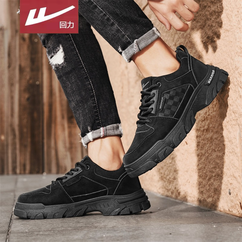 防滑防水耐脏黑色皮面工作上班运动休闲劳保潮鞋 新款 秋季 回力男鞋
