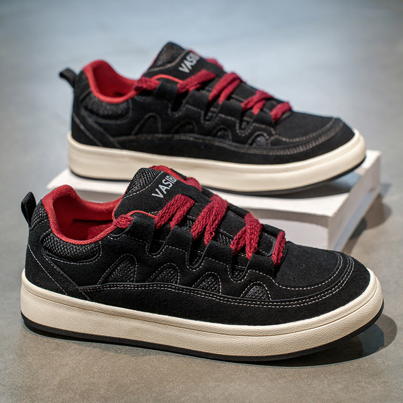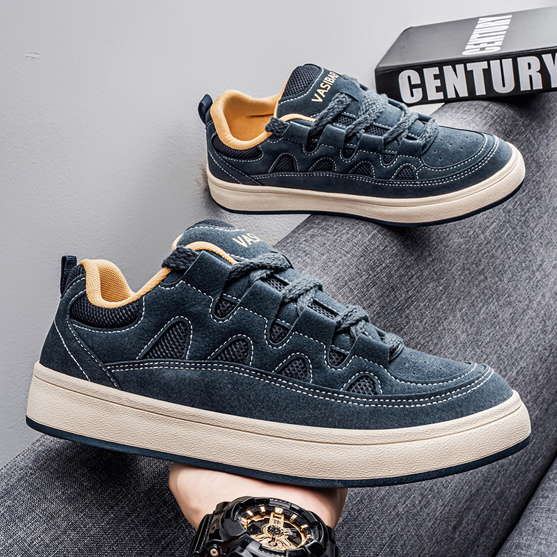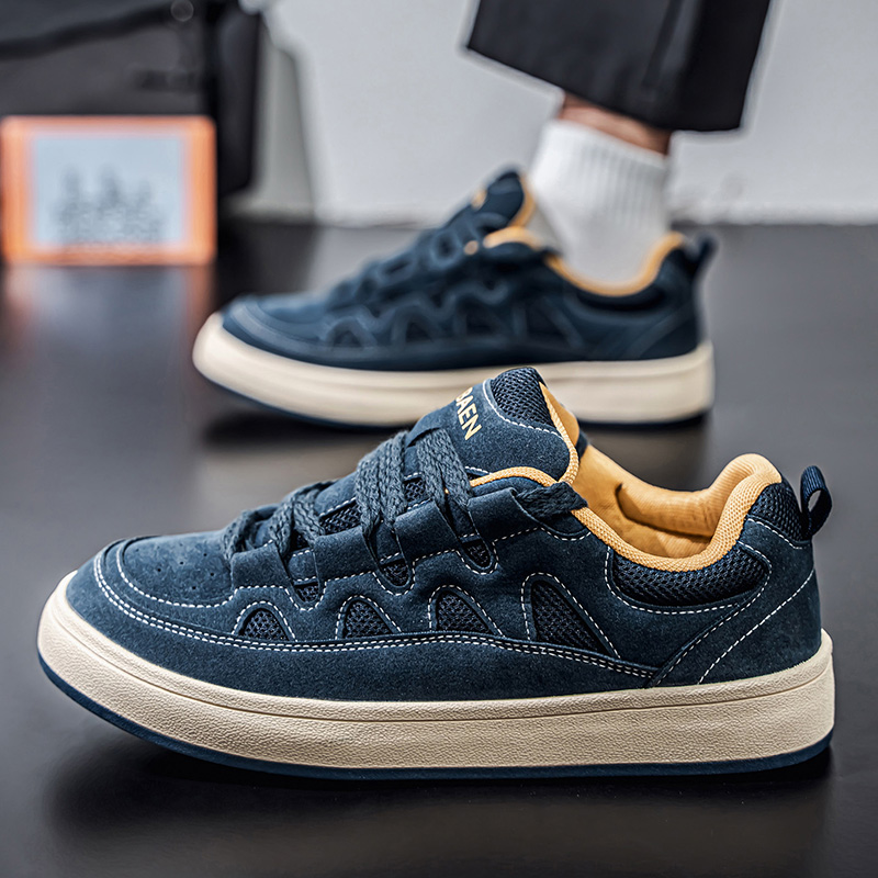 顽刻官方海军蓝春季 校园风W系列翻毛皮帆布拼接男女国潮滑板鞋